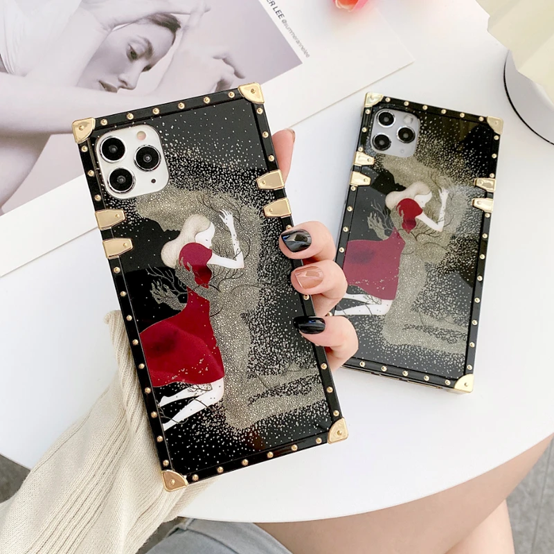 Квадратный чехол с мультяшным персонажем для iPhone 12 11 Pro MAX XS MAX XR X 7 8 Plus, винтажный Блестящий раздельный мягкий чехол