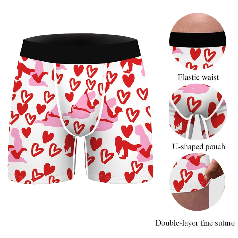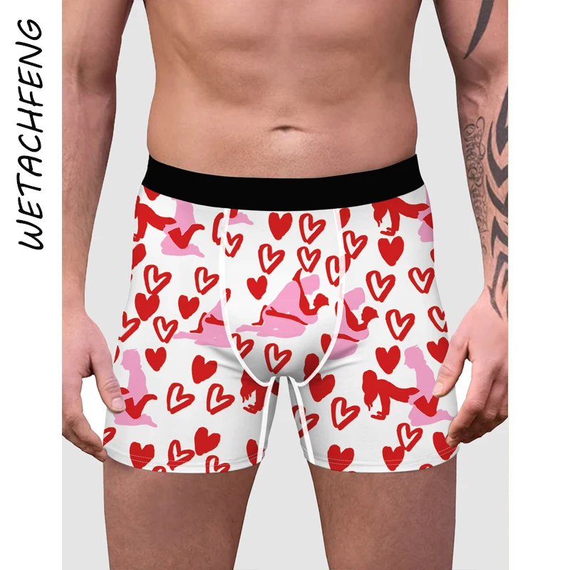 Человек Undrewear сексуальное красное сердце 3D принт, мужские боксеры, шорты, из дышащего материала высокого качества, мужские трусы-плавки, летнее платье в стиле "Ретро", большой трусики большого размера брюки