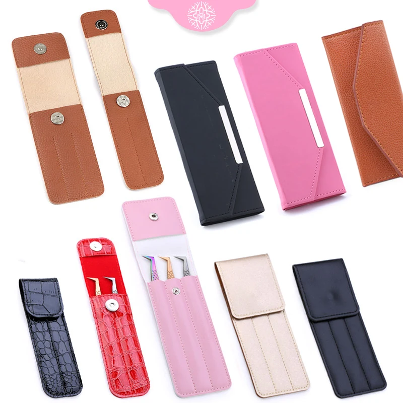 Пинцет для наращивания ресниц, кожаный чехол, держатель для пинцета, профессиональный портативный безопасный контейнер для хранения инструментов для макияжа