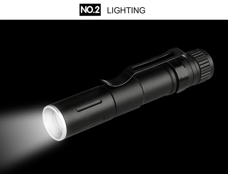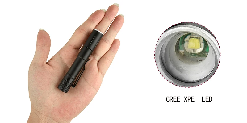 3. Бусины: светодиодный бисер4. Режим: 3 режима сильный-низкий-стробоскоп5. Срок службы лампы: 100000 часов6. Цвет Фонарика: черный7. Излучаемый Цвет: белый светильник8. Переключатель:Нажмите кнопку ВКЛ/ВЫКЛ9. Линзы: выпуклая линза10. Чехол Материал:Алюминиевый сплав11. Батарея: AAA батарея (не входит в комплект)12. Размеры: 8,3 см * 1,5 см * 1,5 см