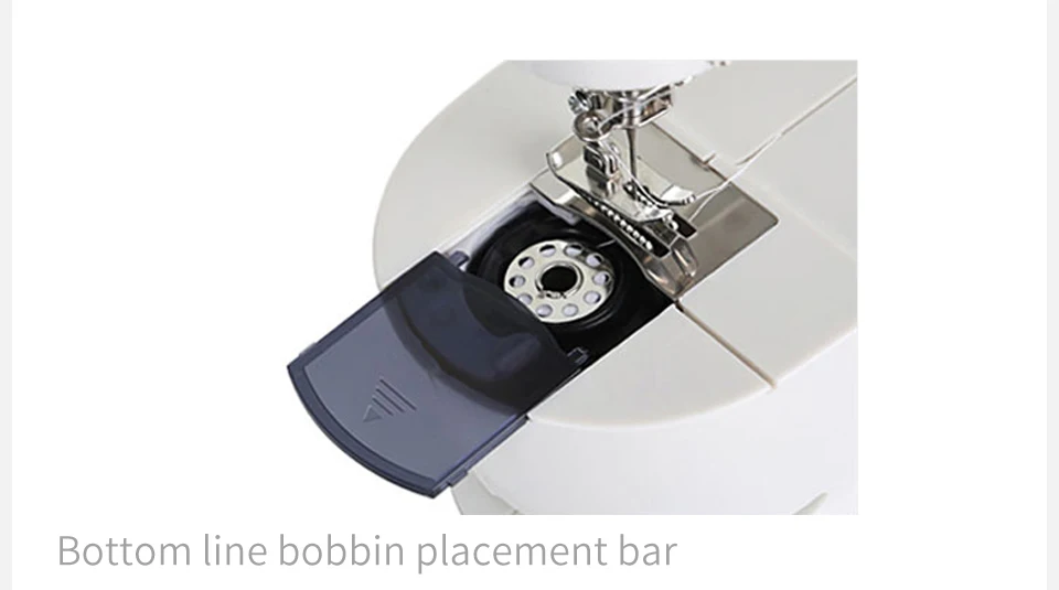 -Двойные нити и идеальное управление стежком-Лучший вид и более удобный в резке резьбы-Мини-размер, легкий и с изысканным качеством изготовления-Базовая швейная машина, с ее простой в использовании функцией, подходит для всех пользователей швейных машин-Лампа освещения и резец резьбы, легко отрезать нити-Большая катушка может использоваться с устройством перемотки для легкой замены нижней катушки