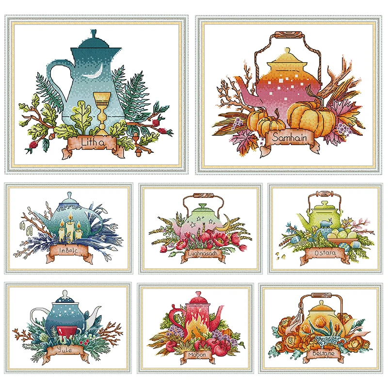 Наборы для вышивки крестиком, набор чайников, штампованная вышивка, рукоделие, украшение, счетный 11CT 14CT, печать, ремесла, холст, нить, подарочный набор У нас есть 14CT и 11CT.