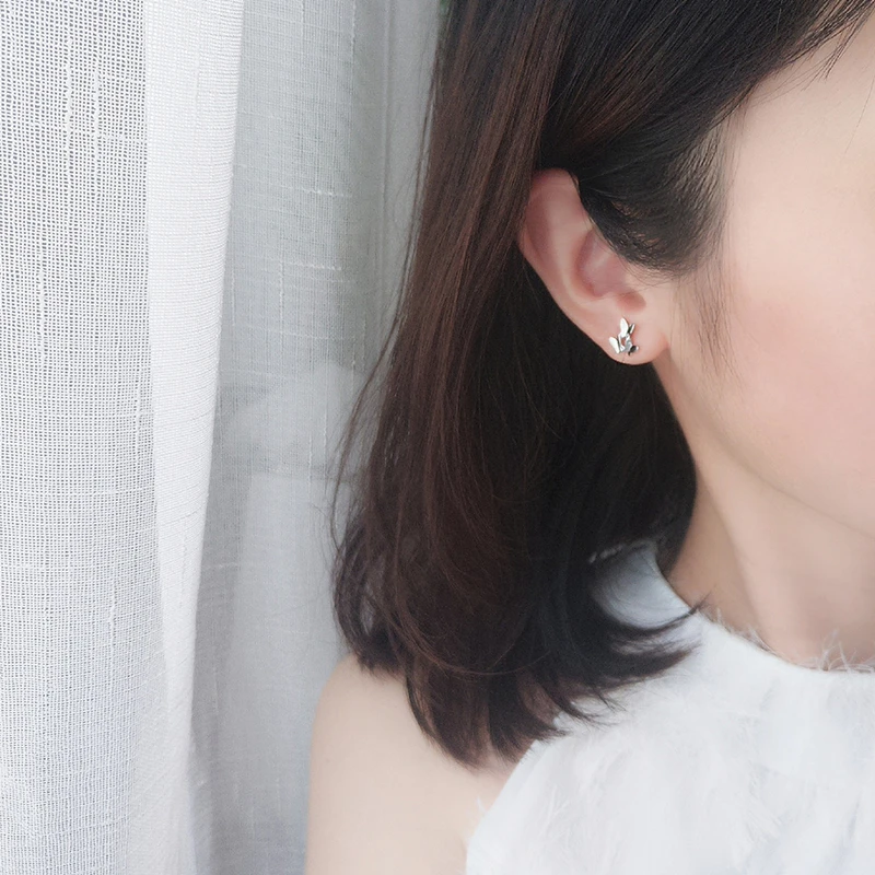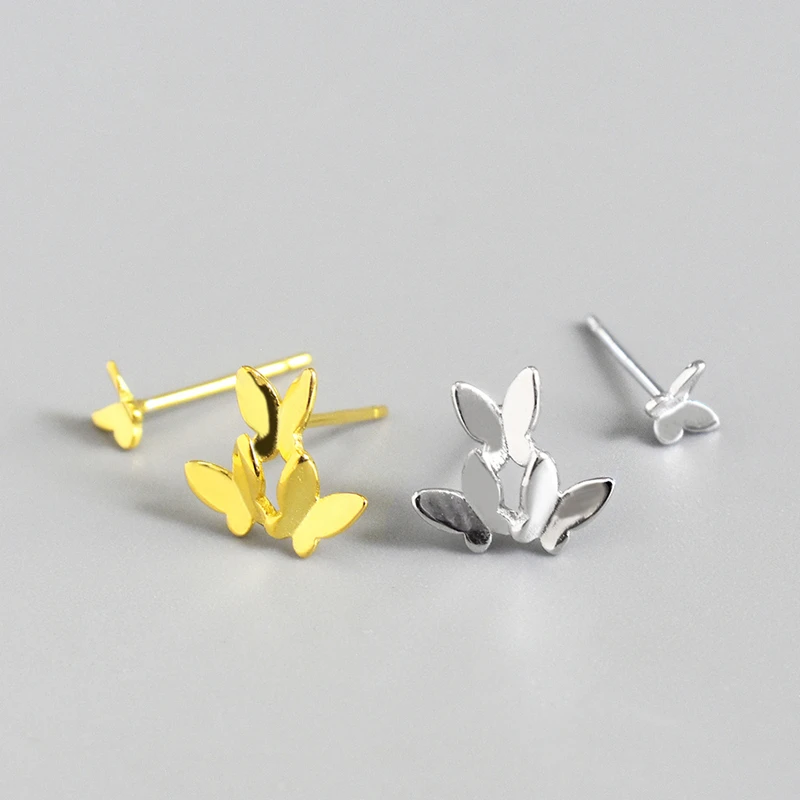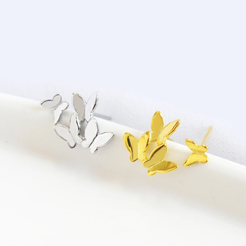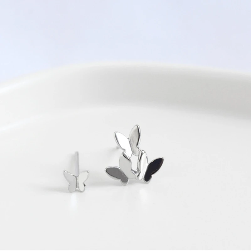 LKO настоящее серебро 925 пробы 100% асимметрия милая бабочка серьги-гвоздики для женщин ювелирные изделия милые серьги-гвоздики для девочек украшения