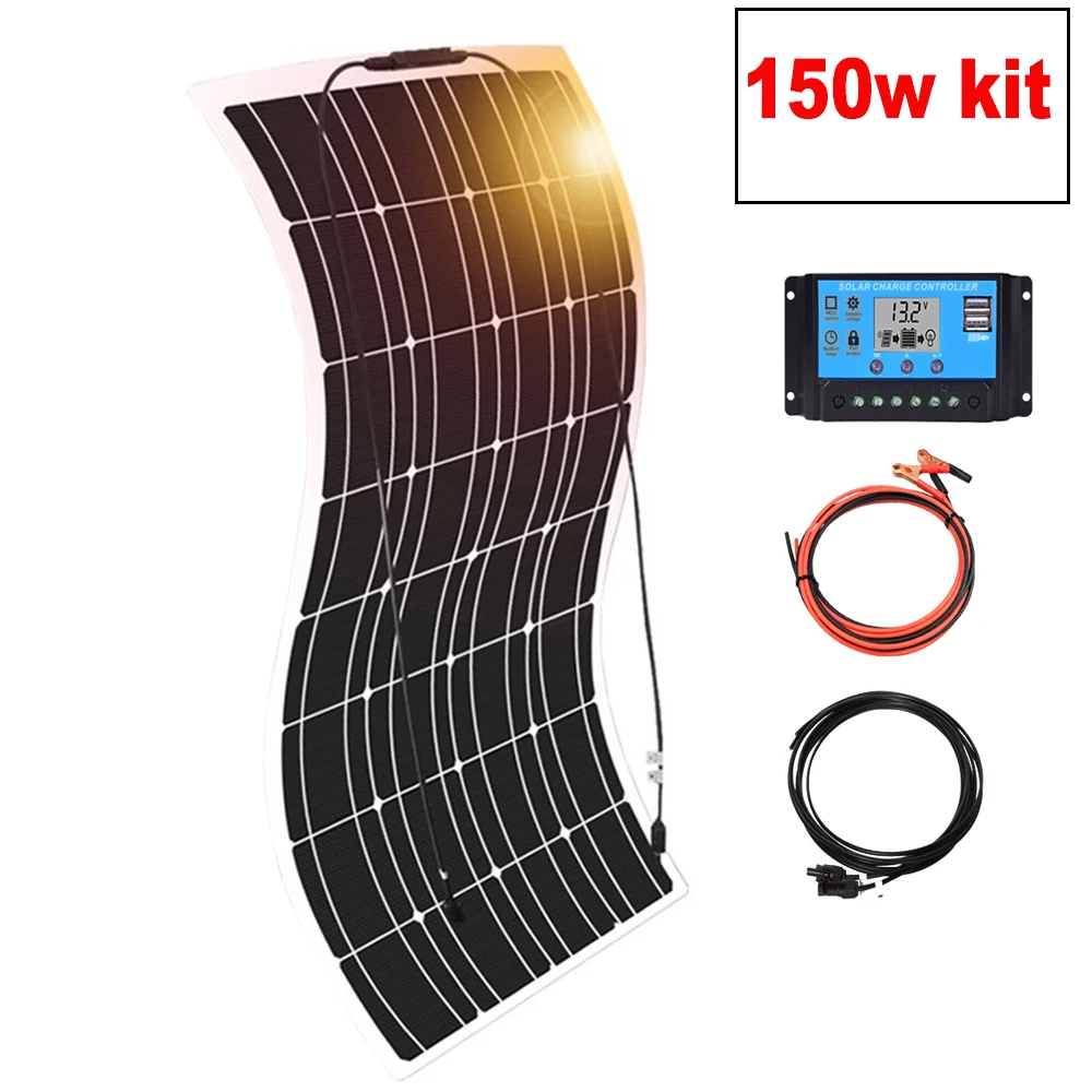 солнечная панель батарея 12v 300 вт гибкая фотоэлектрическая система зарядное устройство комплект 5 в USB для автомобиля лодка кемпер дома 110 в 220 в 1000 вт инвертор