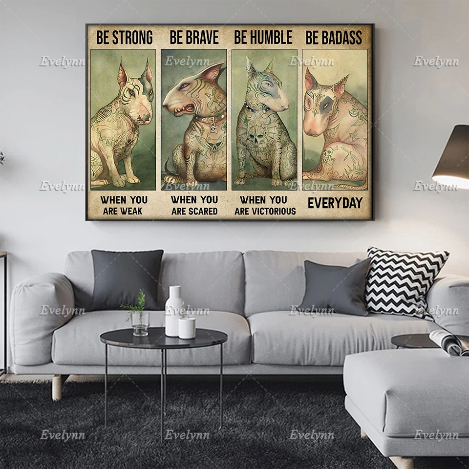 Татуировка бультерьер собака плакат Татуировка татуировщик подарки быть сильным, когда вы слабые стены печать домашний декор холст плавающая рамка