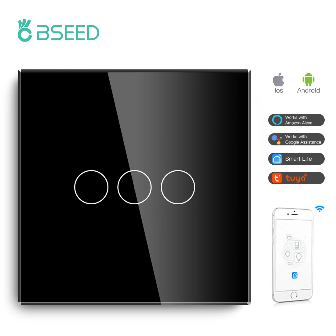 Умный сенсорный выключатель BSEED с Wi-Fi, 3 клавиши, 123 дюйма, стеклянный переключатель белого, черного, золотого цвета, работает с Tuya Google Smart Life