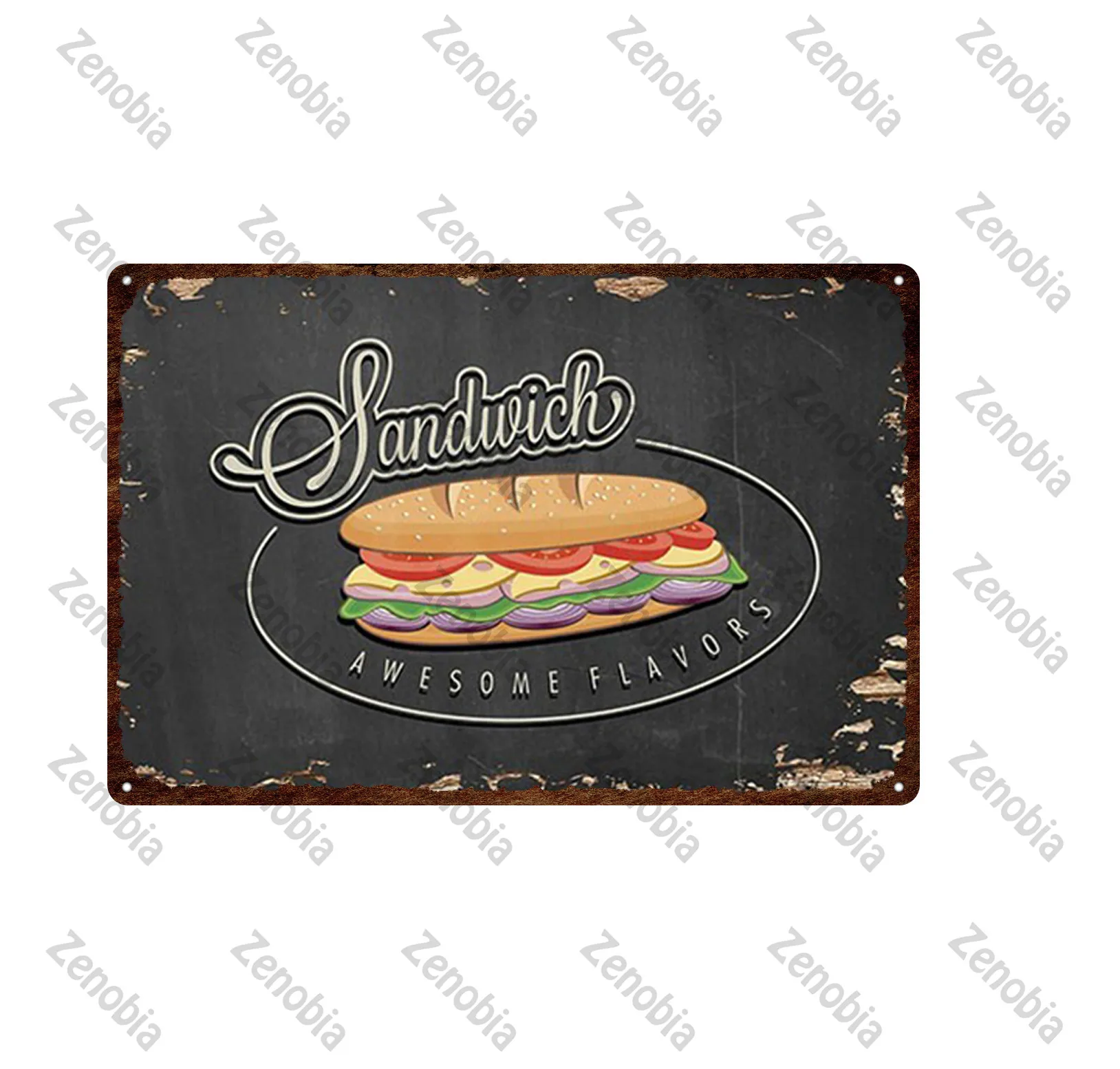 Сэндвич хот-дог бургер металлическая жестяная вывеска Ретро винтажн...