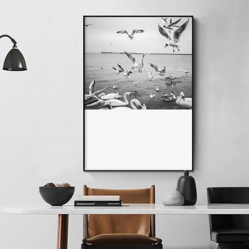 Абстрактные черно-белые настенные картины с животными, минималистск...