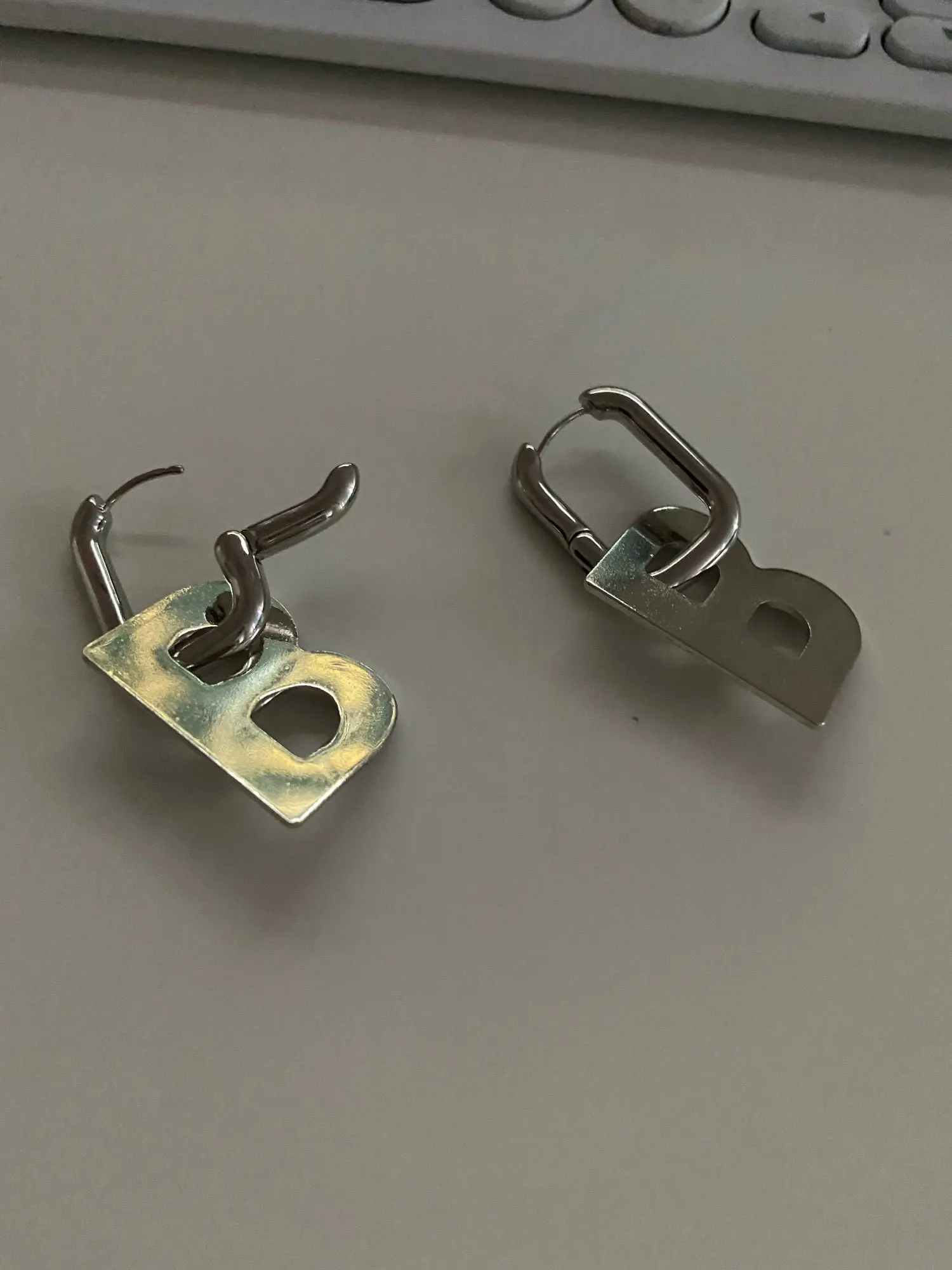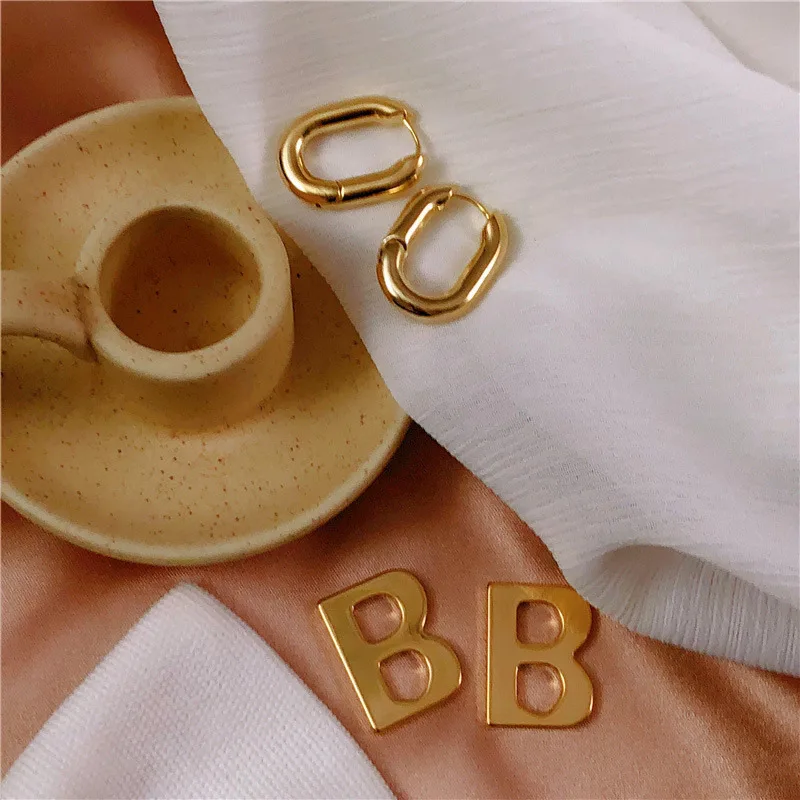 Высококачественные женские и мужские серьги в форме буквы B, Модные Элегантные корейские минималистичные массивные серьги золотого и серебряного цвета, ювелирные изделия