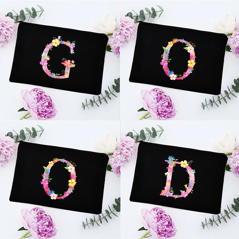 Косметичка с цветочным принтом Initial Letter A Z, дорожная косметичка, Сумка Для Хранения Туалетных принадлежностей, женская косметичка, клатч, Студенческая сумка для карандашей