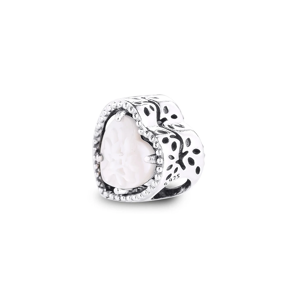Ажурное сердце и родословное дерево шарм 100% натуральные браслеты ювелирные изделия женские новые DIY Высокое качество бусины Стерлинговое Серебро S925 кулон