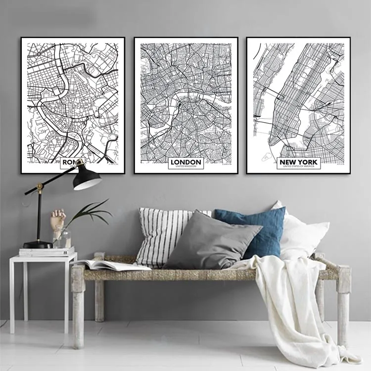 Плакаты на заказ с изображением Парижа, Лондона, Нью-Йорка, черные,...