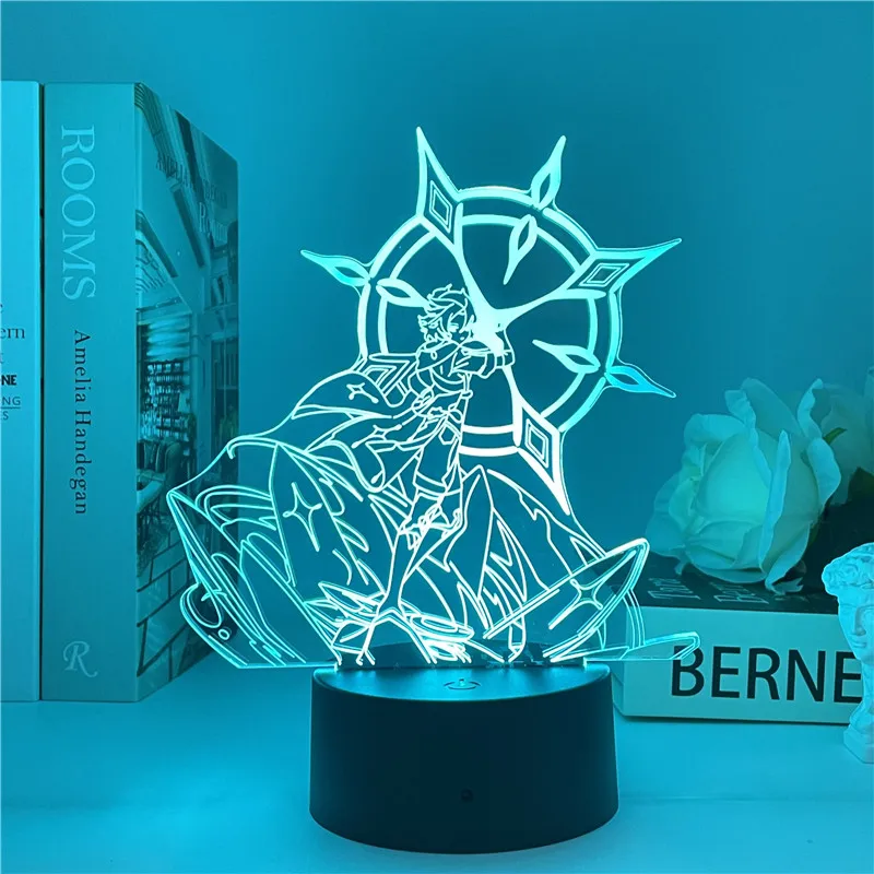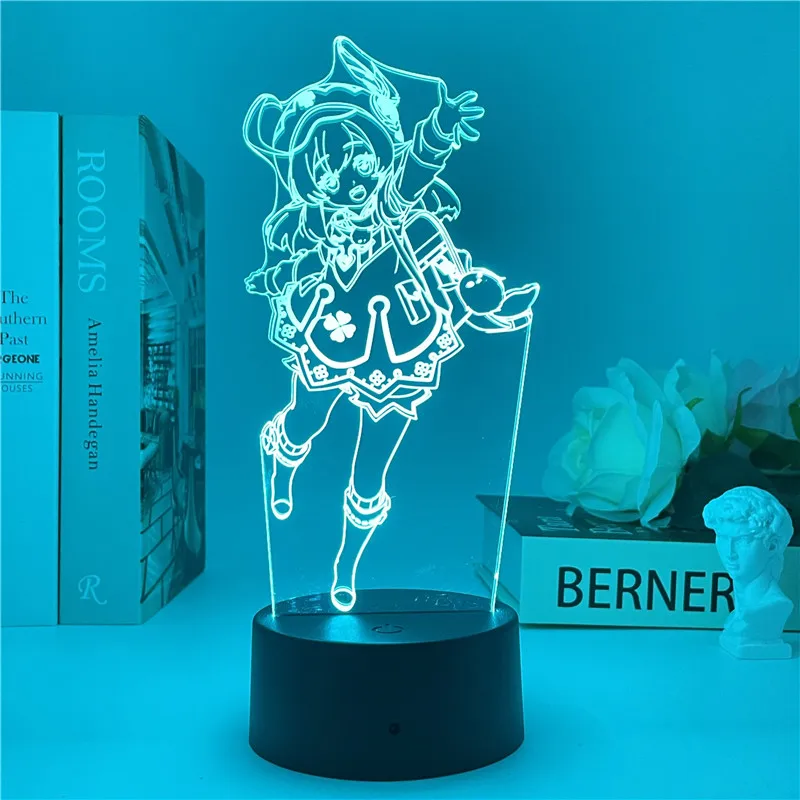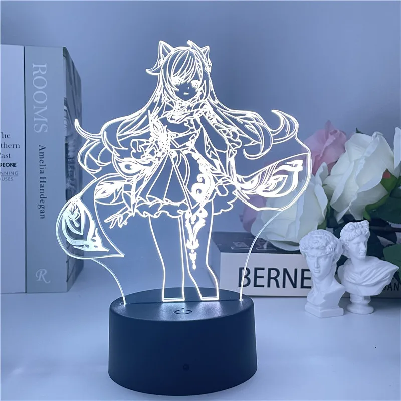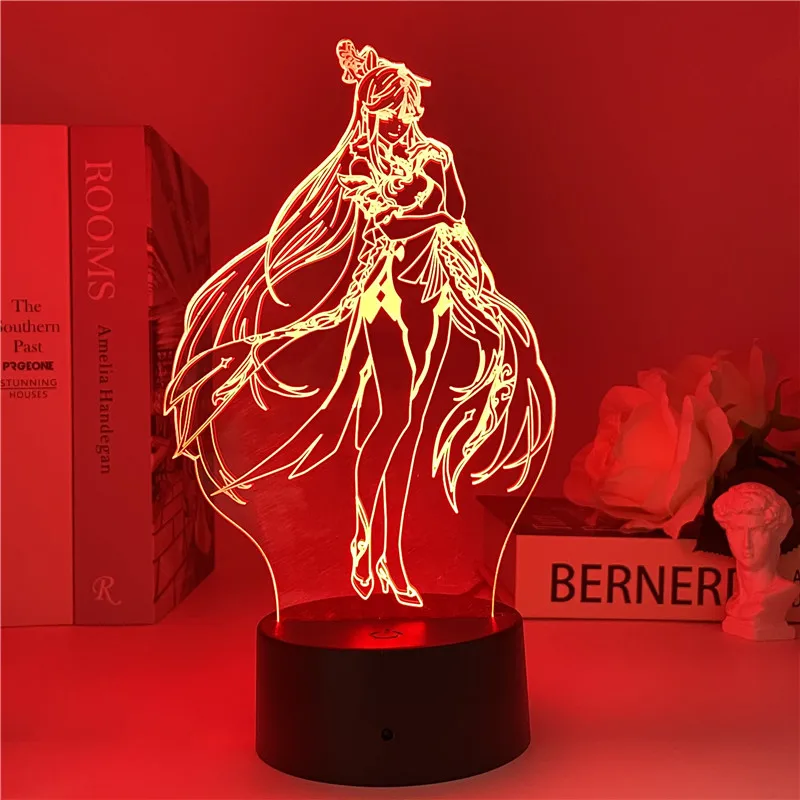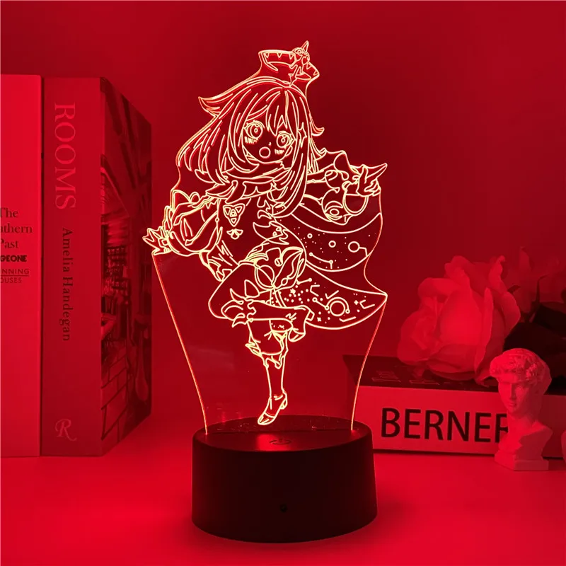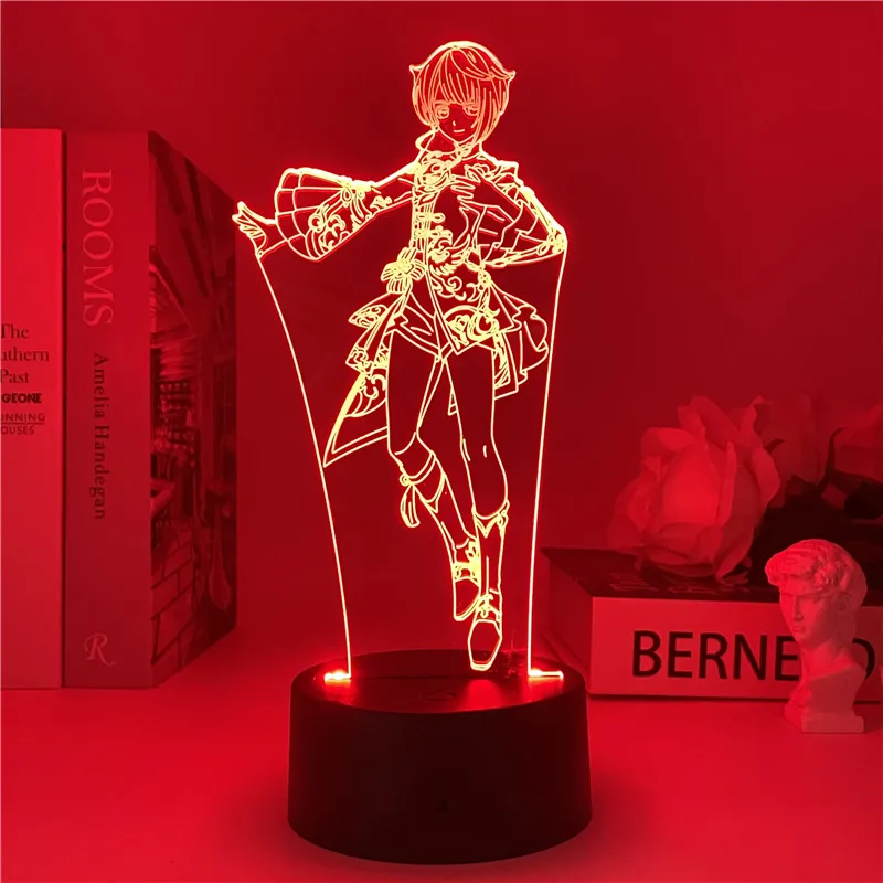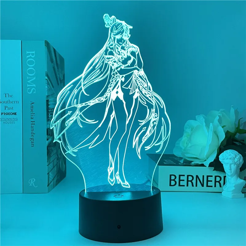Настольная лампа Genshin Impact с 3D иллюзией, светодиодное ночное освещение, настольные лампы с аниме игровыми персонажами, подарок для детей, домашнее украшение комнаты, цветами RGB