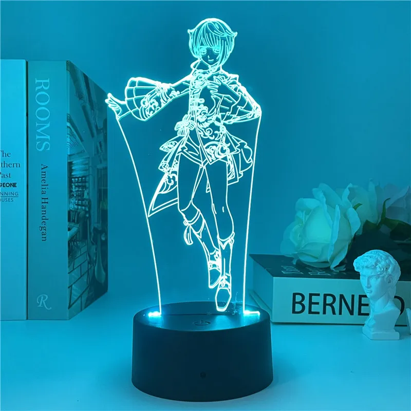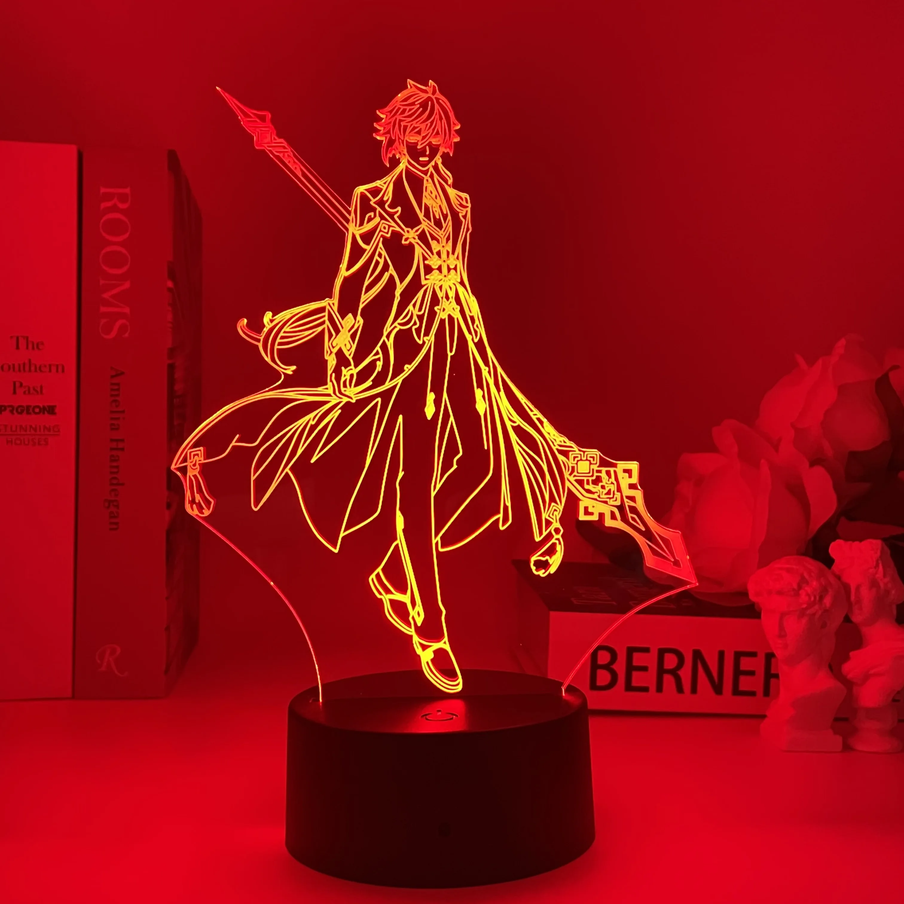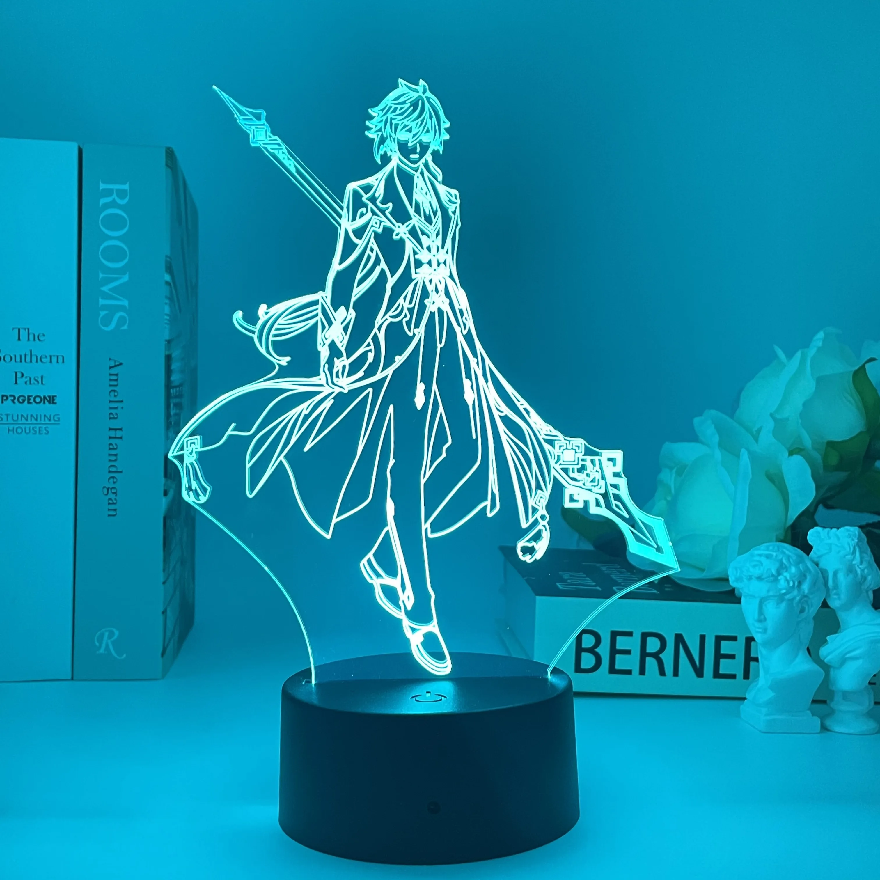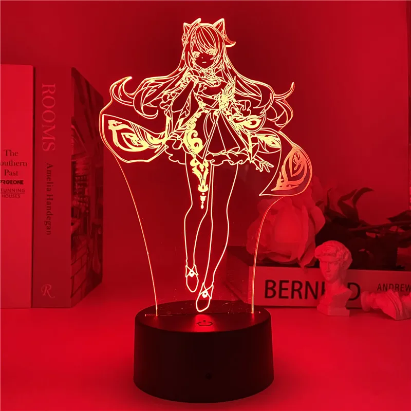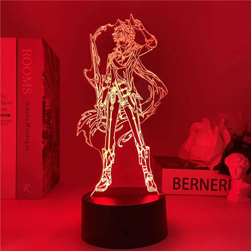 Настольная лампа Genshin Impact с 3D иллюзией, светодиодное ночное освещение, настольные лампы с аниме игровыми персонажами, подарок для детей, домашнее украшение комнаты, цветами RGB