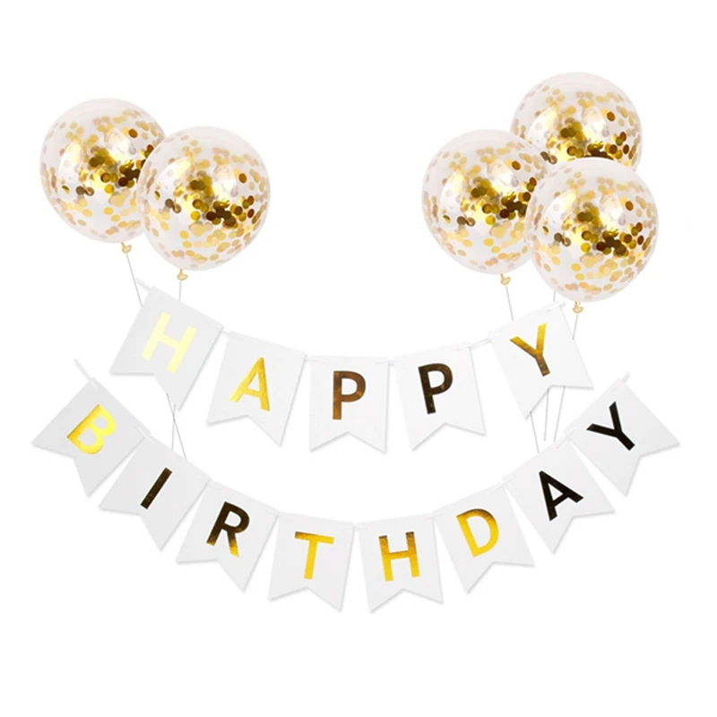 С Днем Рождения Бумаги Баннер с 5 шт воздушные шары с конфетти цвета розовое золото для детей и взрослых, хороший подарок на день рождения, вечерние украшения