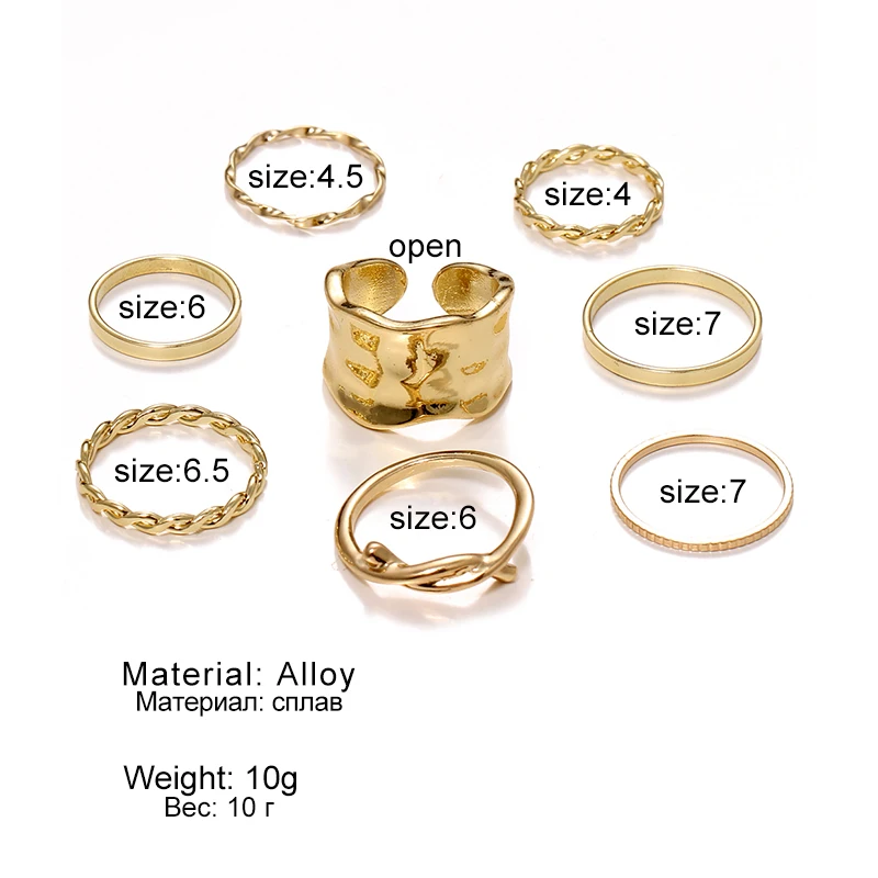 Набор Колец VKME золотистого цвета в винтажном стиле, 8 шт.компл., ...