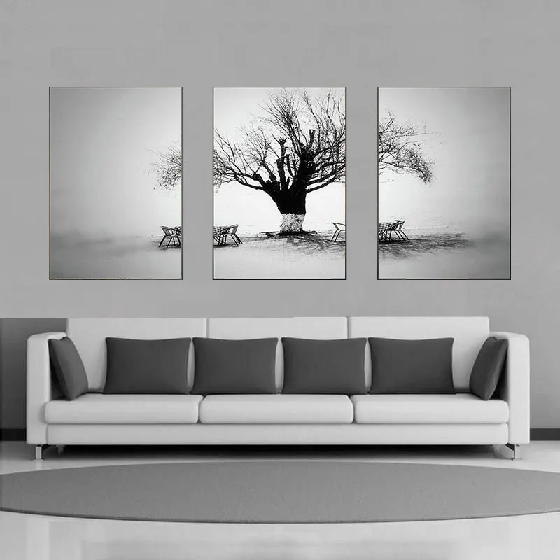 Комплект из 3-х предметов современный Черный и белый пейзаж картины плакаты с деревом и принты мост холст картины Wall Art Для Гостиная