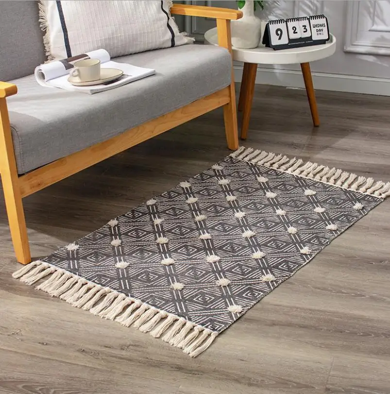 Ретро, богемный, ручная работа, хлопковый льняной ковер, искусственный геометрический напольный коврик, декоративное одеяло