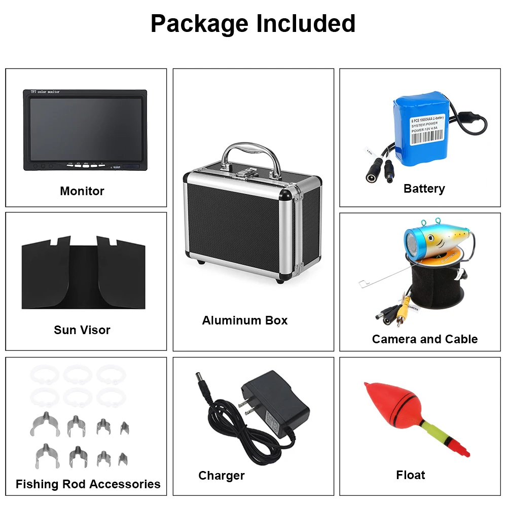 Этот продукт, который вы смотрите сейчас, является последней популярной, модной, красивой и удобной системой подводной рыбалки. Он не только имеет большой и цветной экран, но также имеет камеру высокой четкости, которая имеет HD 1000 телевизионных линий. Более того, есть 12 высокомощный белый светильник s для камеры светильник источник, а также эти 12 белый светильник s отделены от камеры, чтобы предотвратить попадание воды входит в комплект поставки.