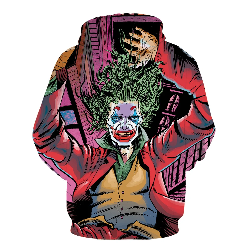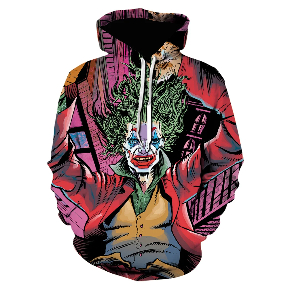 Модный клоун 3D печать Косплей-костюмы с капюшоном для мужчин и женщин Толстовка мультфильм Джокер Хэллоуин Свитшот личность пальто размера плюс
