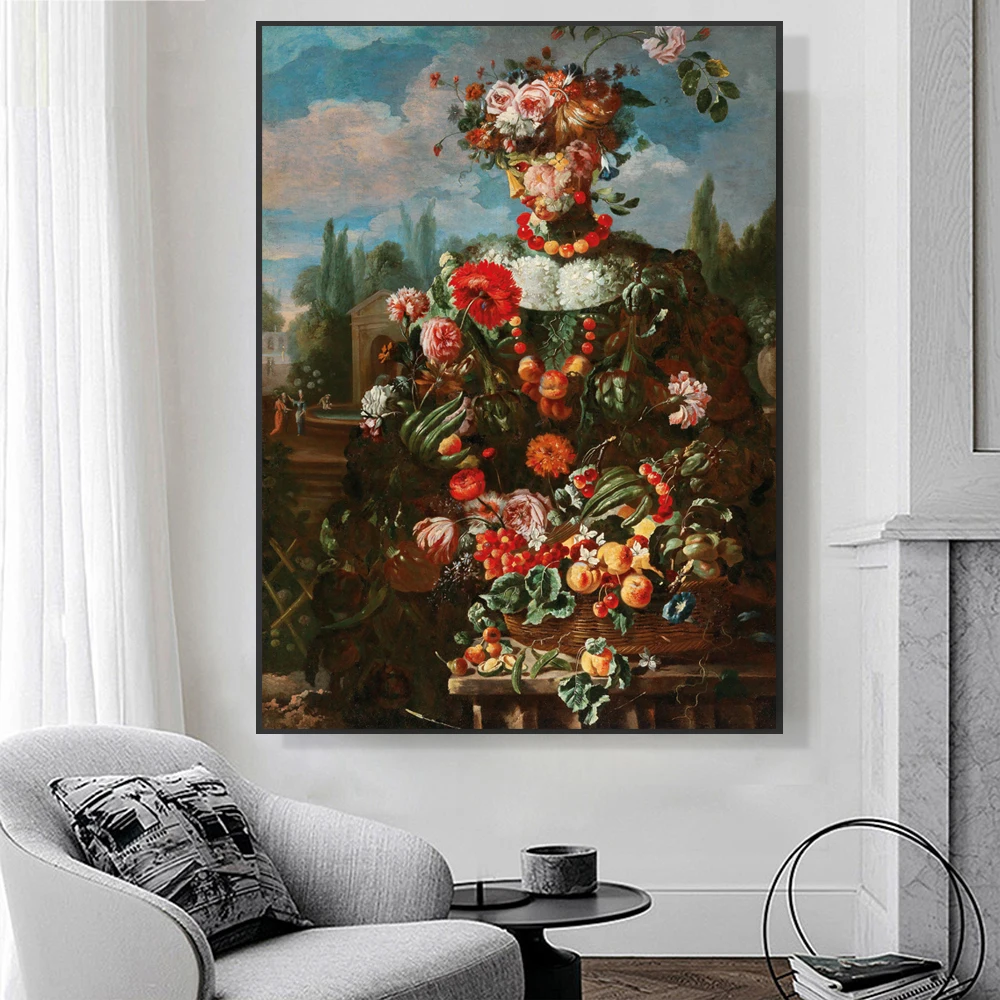 Классическая картина маслом, цветы и фрукты, весенний принт, холст, плакат, настенное искусство для гостиной, столовой, домашнее украшение, абстрактный