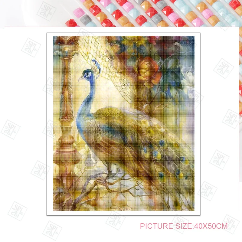Картина из страз сделай сам с красивым павлином 5D, украшение для дома, мозаика с животными, наклейка Стразы, вышитая Настенная картина