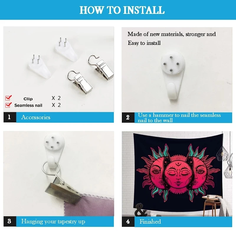 Packing list1*Tapestry ( includeFree Decoration Accessories )
