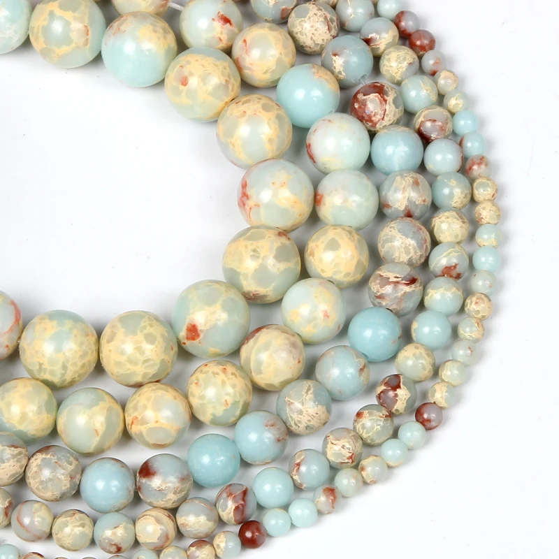 Бусины из натурального камня, белый Императорский камень, бусины россыпью для изготовления ювелирных изделий, рукоделия, браслетов сделай сам, нитка 4-12 мм