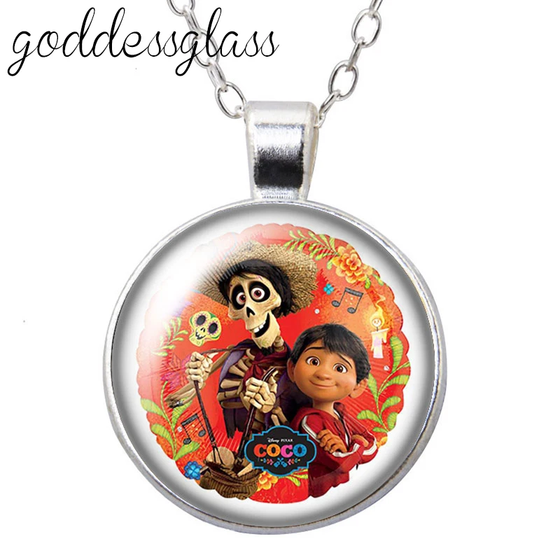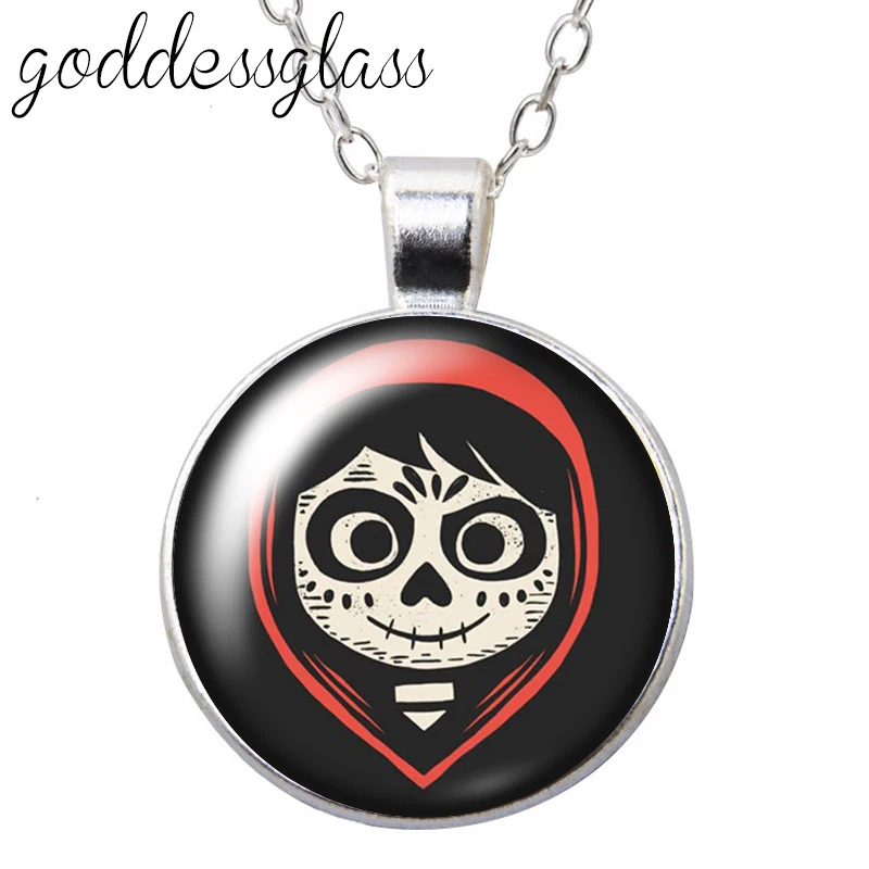 Disney смерть день Коко Мигель любит музыку круглые стеклянные кабошоны разрисованные изделия из стекла с серебряным покрытиемКристалл ожерелья с подвесками, ювелирное изделие, подарок