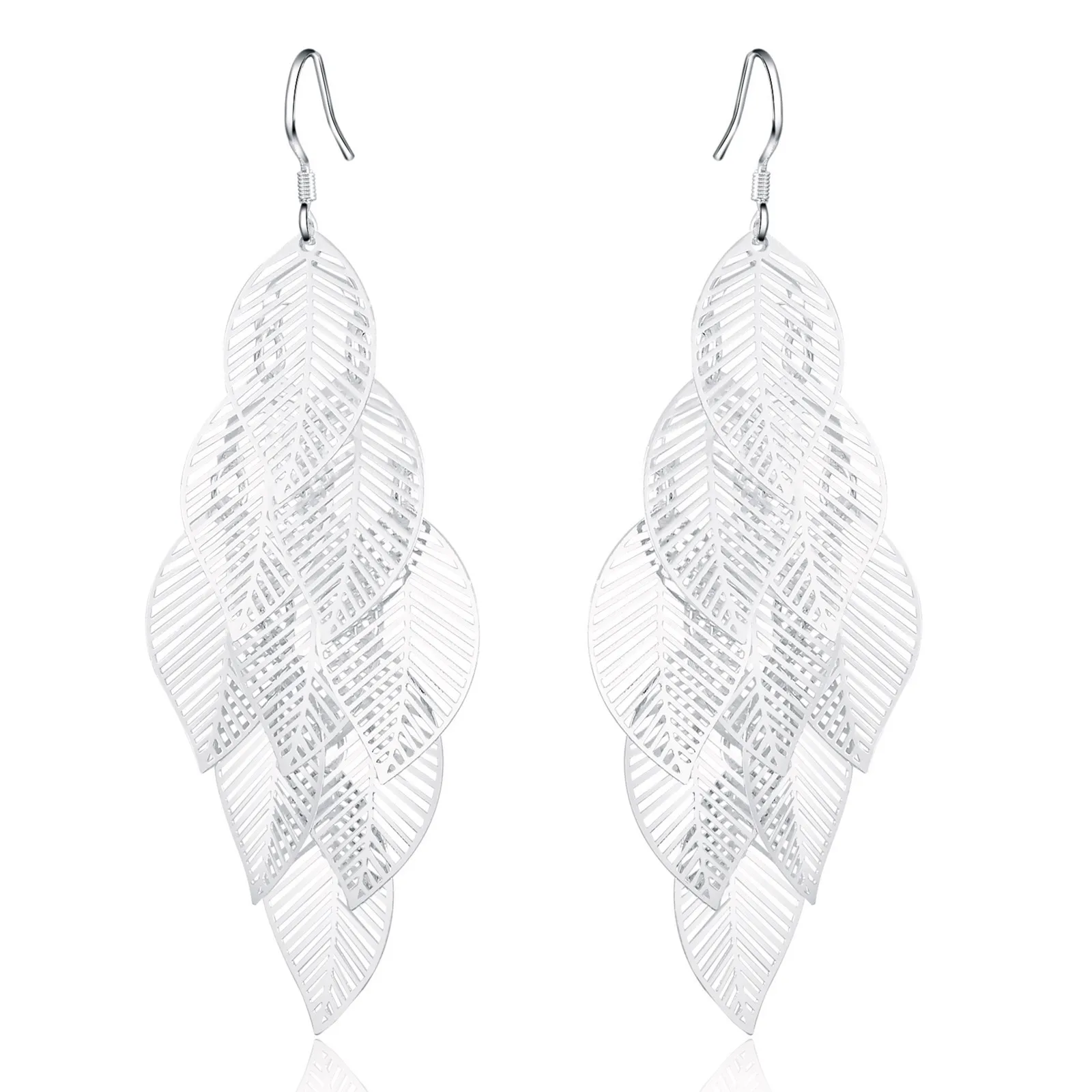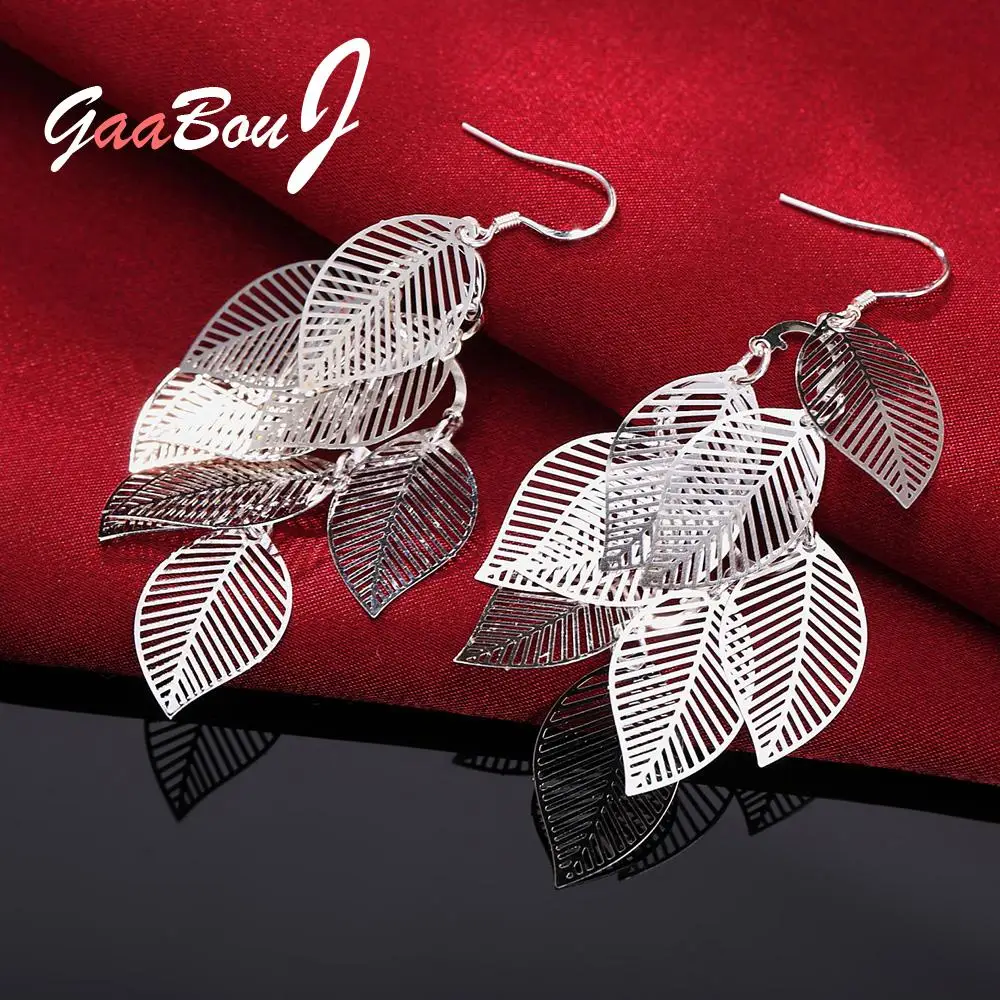 Женские серьги-подвески в виде листьев, из серебра 925 пробы
