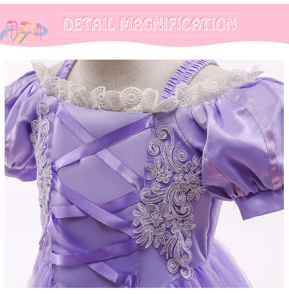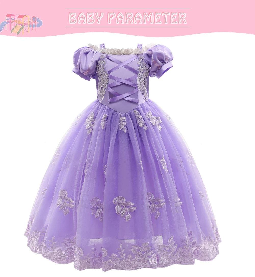Платье принцессы Рапунцель для девочек; Детский карнавальный костюм на Хэллоуин; Рождественские нарядные платья; Комплект свадебной одежды для девочек