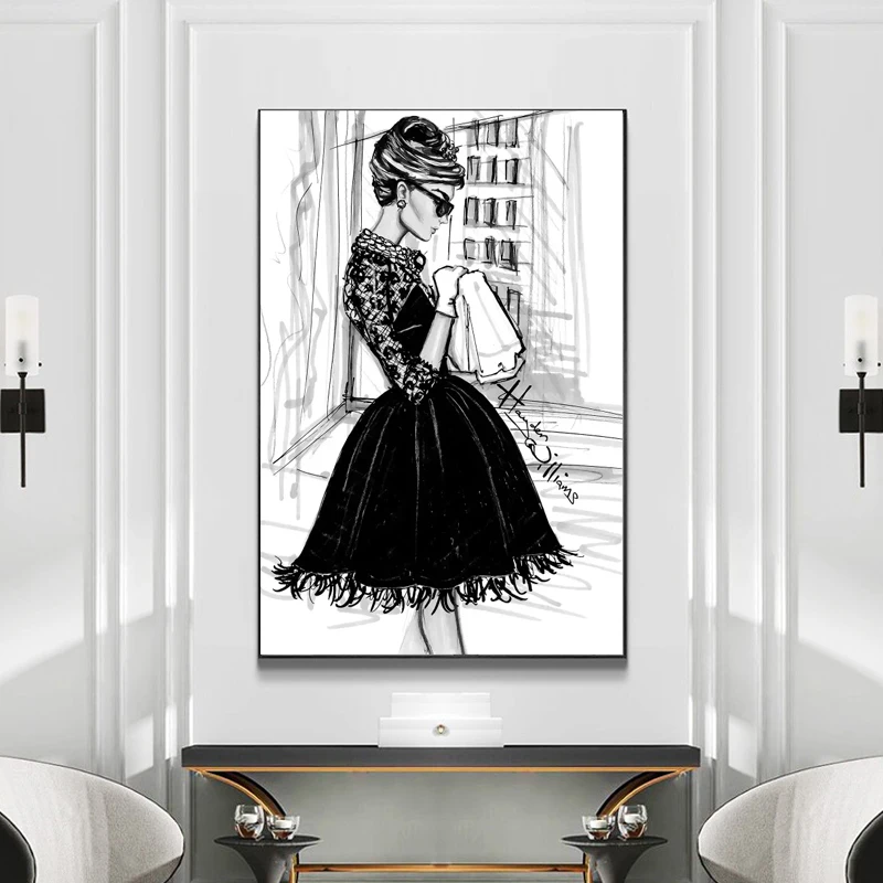 Современная мода Одри Хепберн холст картина черно-белый постер и принты настенные картины для гостиной домашний декор