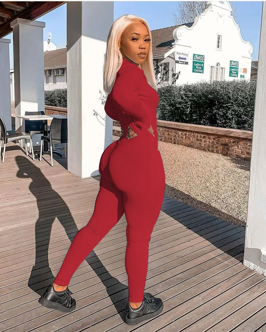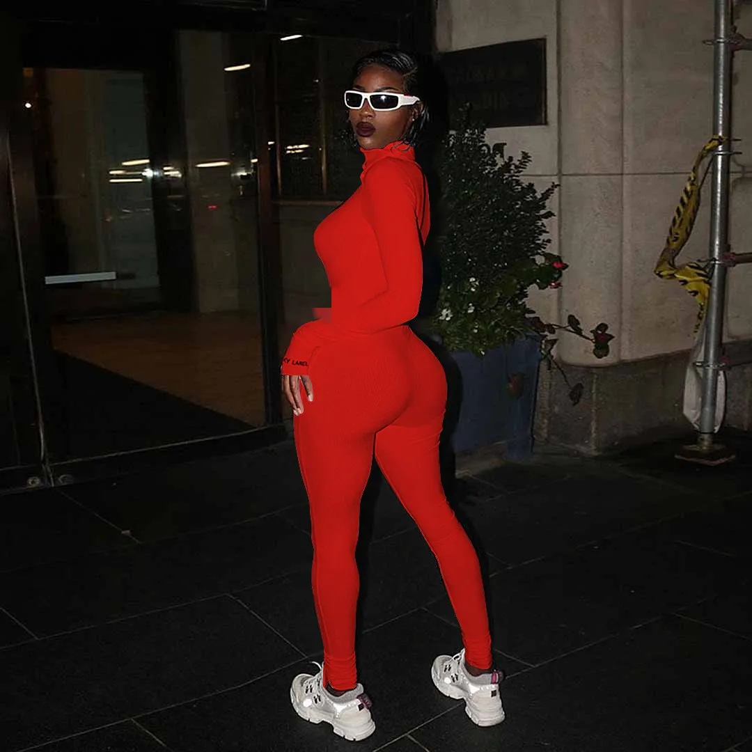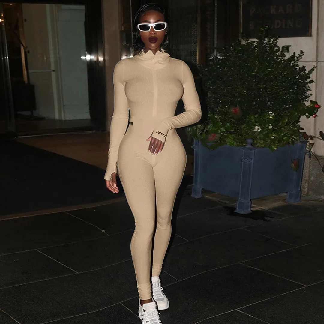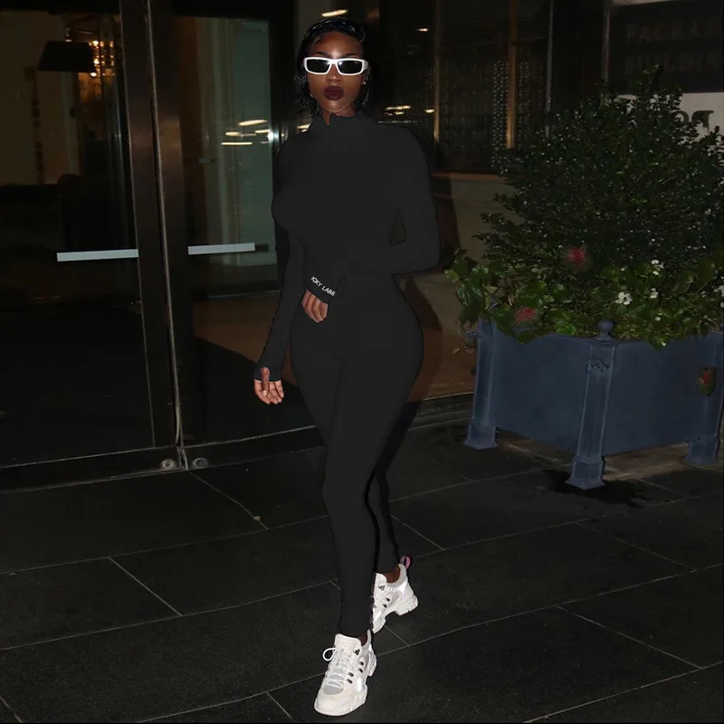 Комбинезон женский в рубчик, с высоким воротником и надписями