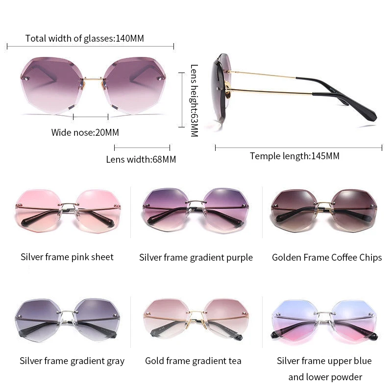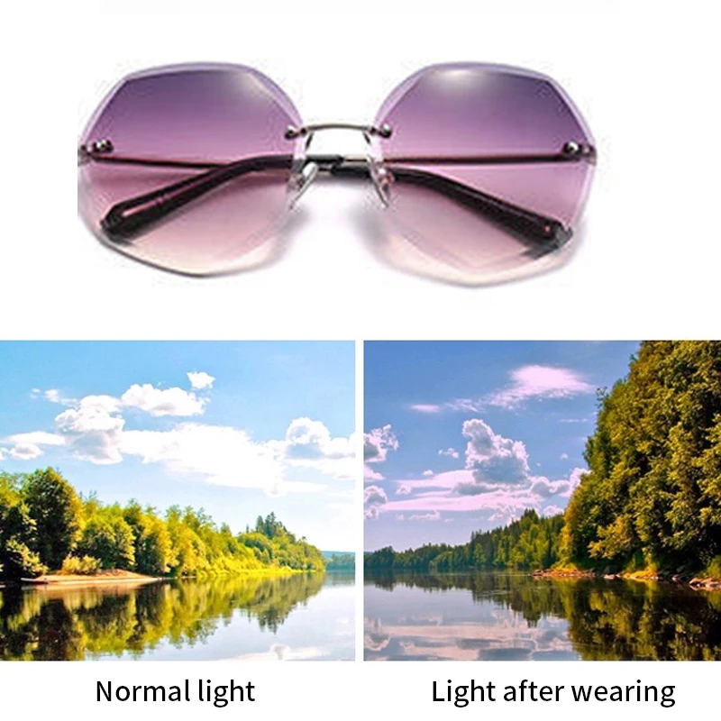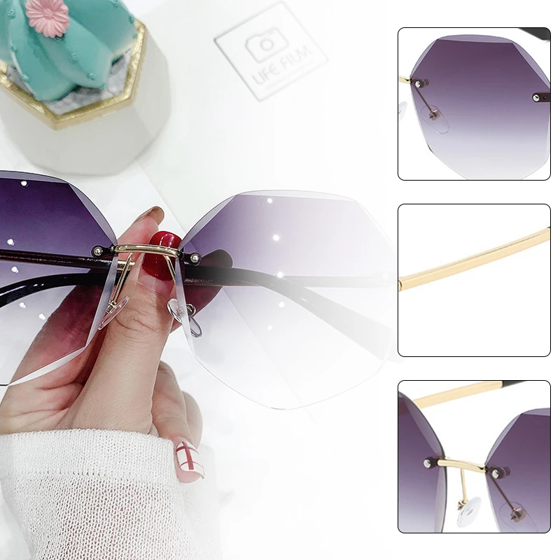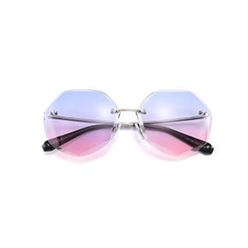 Солнцезащитные очки без оправы женские, многоугольные безрамные солнцезащитные очки с градиентными линзами, в металлической оправе, для велоспорта, пляжа, лето