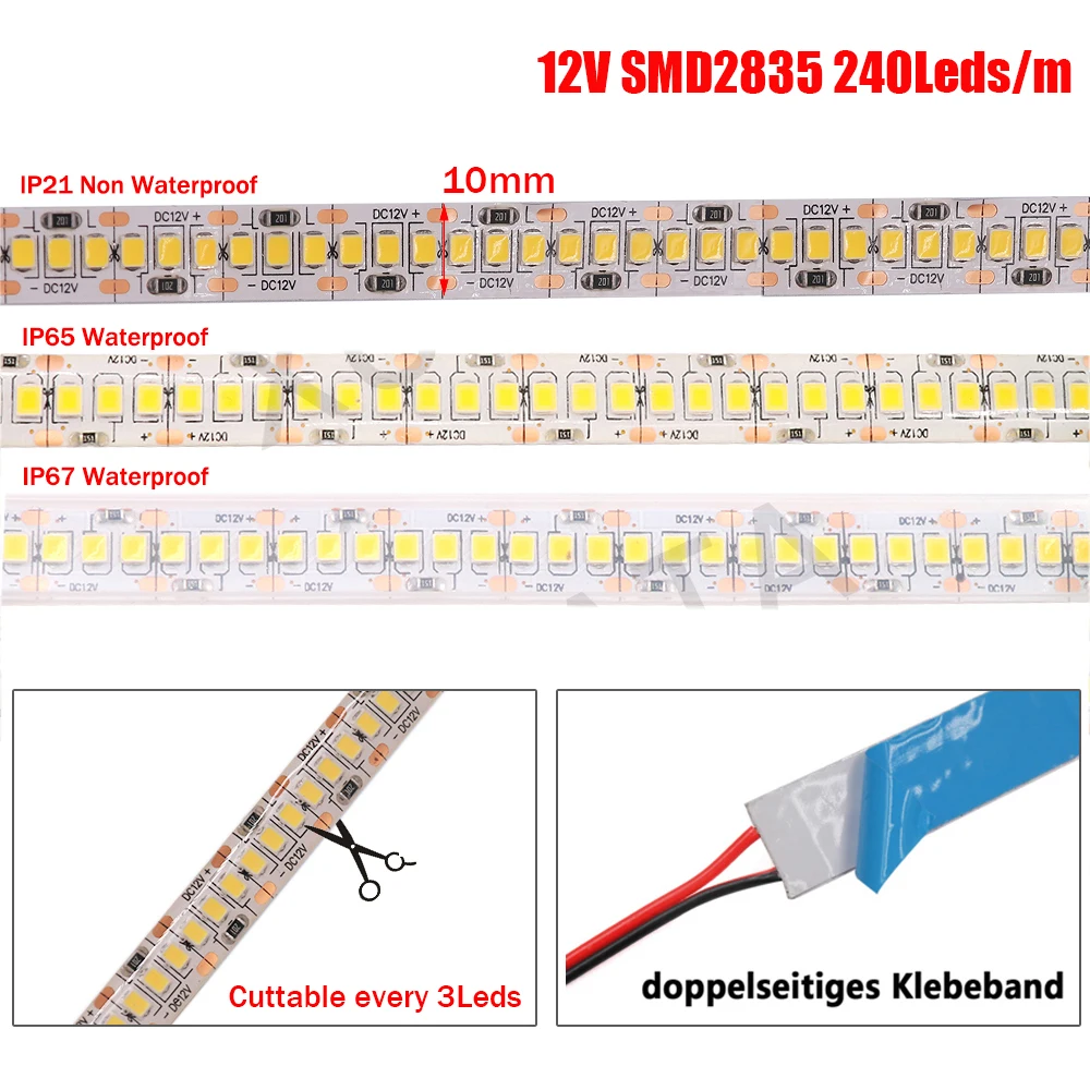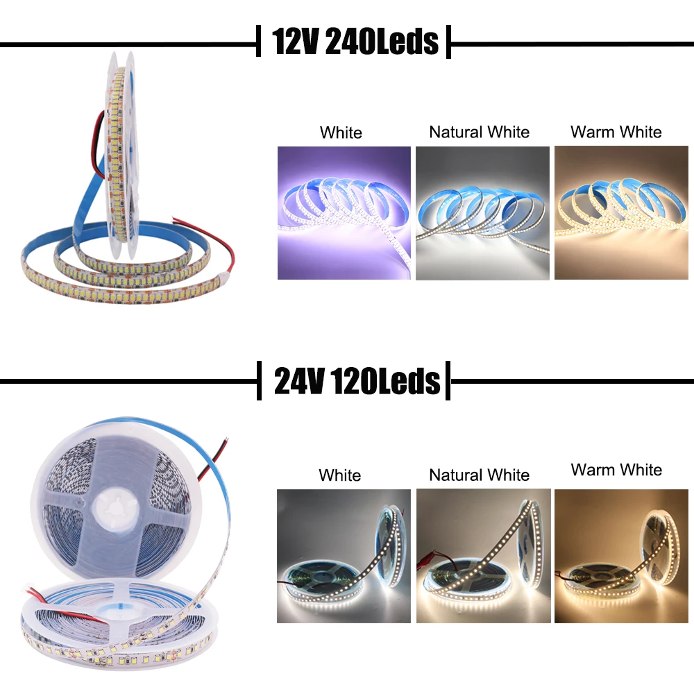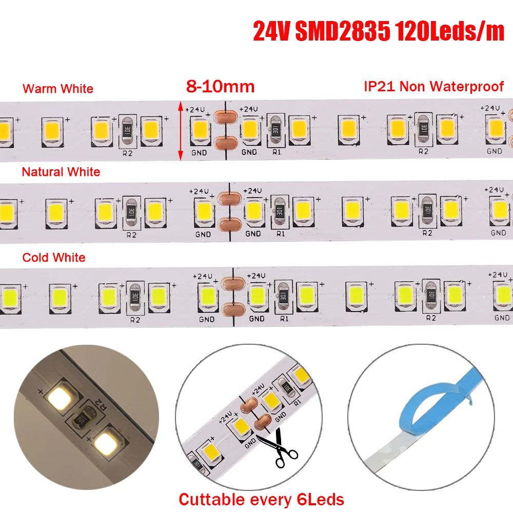 Светодиодная лента, 12 В, 24 В, SMD2835, 5 м, 10 м, 15 м, 20 м, гибкая ленточная, 120240480Led, 3000K, 4500K, 6000K