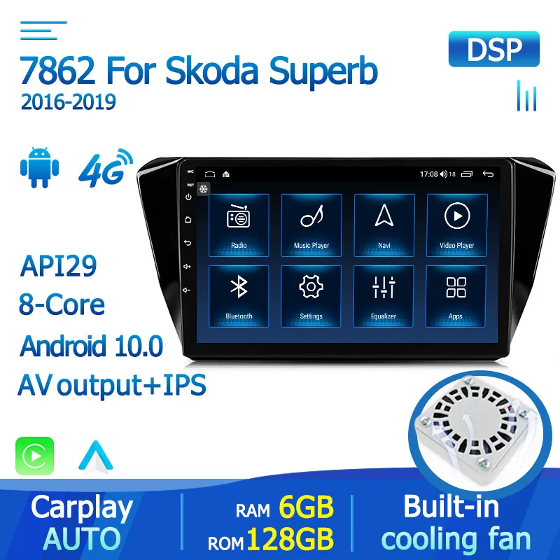 Авторадио-навигация GPS RDS для Skoda Superb 3 2016- 2019 автомобильный мультимедийный плеер Android 10 DSP USB BT FM SWC вентилятор с голосовым управлением