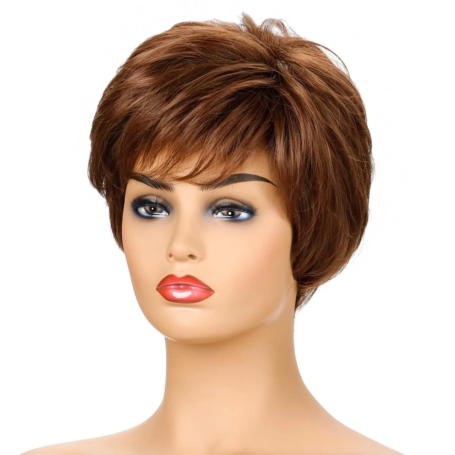 Женский синтетический короткий парик с челкой, смешанные коричневые...