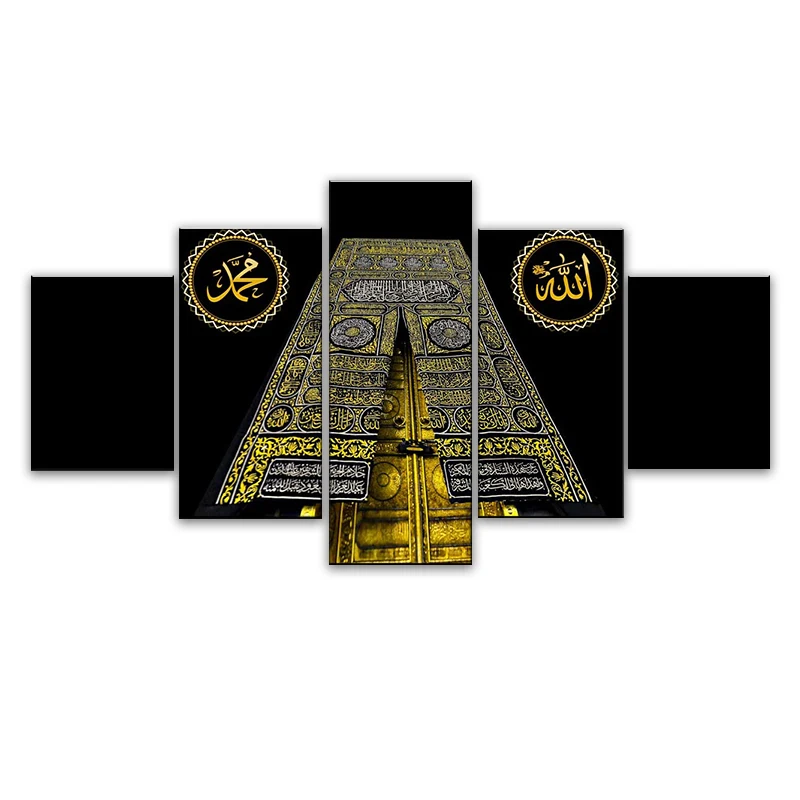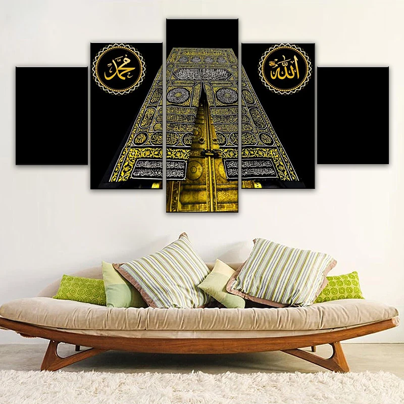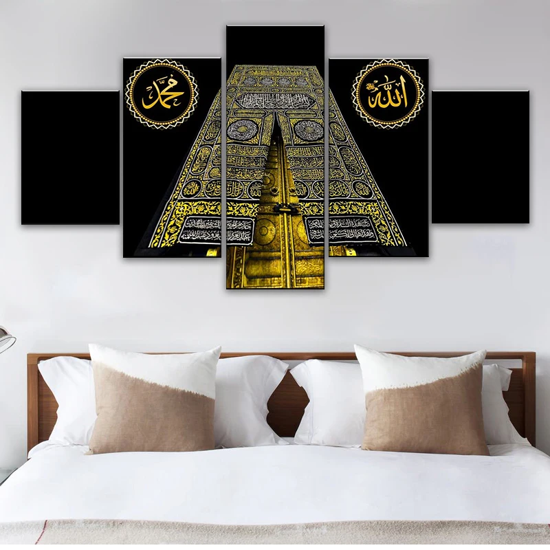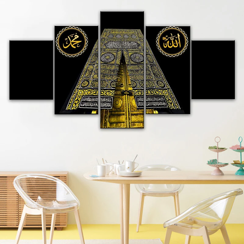 Исламское настенное искусство мусульманские картины для гостиной дверь священного Кааба картины 5 панелей холст Современный художественный дом