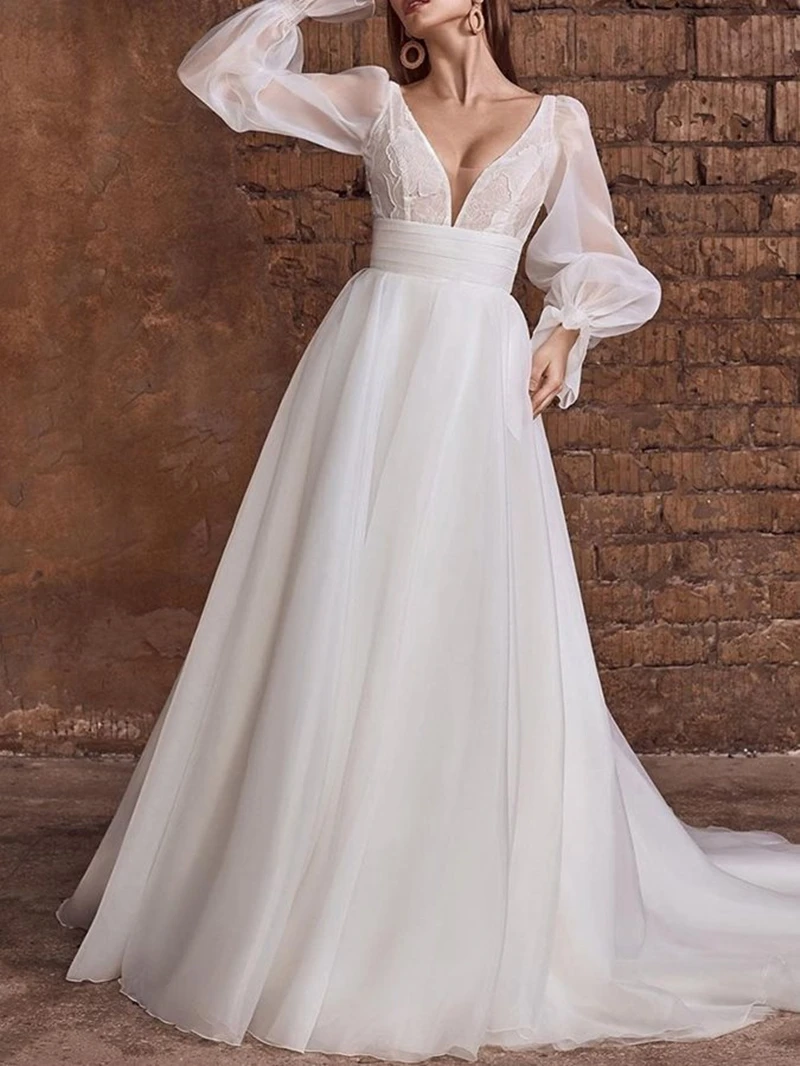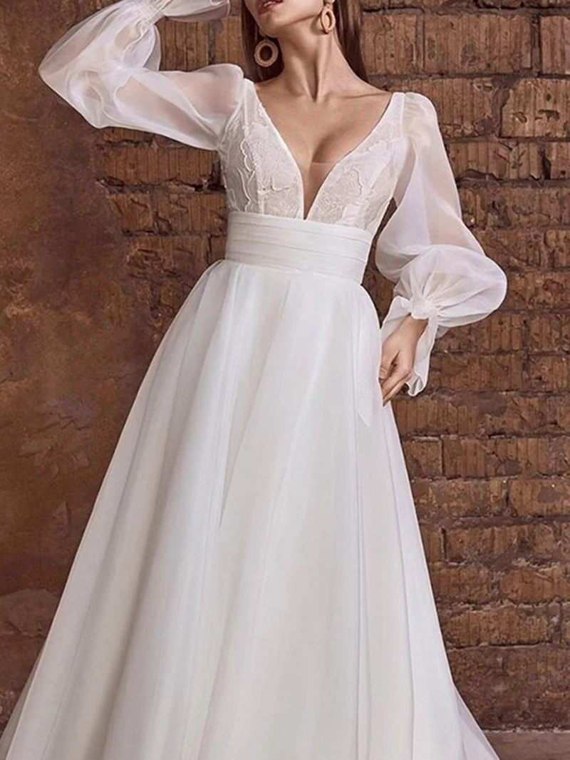Женское свадебное платье с длинным рукавом-фонариком, соблазнительное платье до пола с V-образным вырезом для выпускного вечера, элегантные платья для женщин, 2022