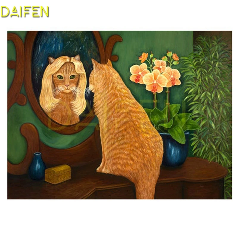 Полноразмерная Алмазная вышивка, вышивка крестиком, кот, Лев, зеркало, полноразмерная круглая Алмазная мозаика, леопард, цветок, алмазная живопись сделай сам, дерево