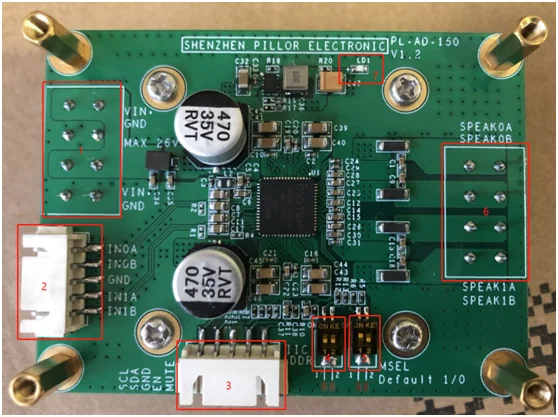 2.Аналоговый Входной аудиосигнал терминал. Заказ сверху вниз:IN0A,IN0B,GND,IN1A,IN1B, СоответствующийГромкая связь,Громкоговоритель,SPEAK1A,SPEAK1BАудиовход терминала. Усиление всей платы по умолчанию20 дБ.