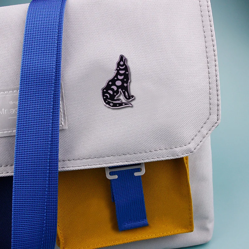 Эмалированная булавка воющего волка, дикое животное, луна, фаза, зн...