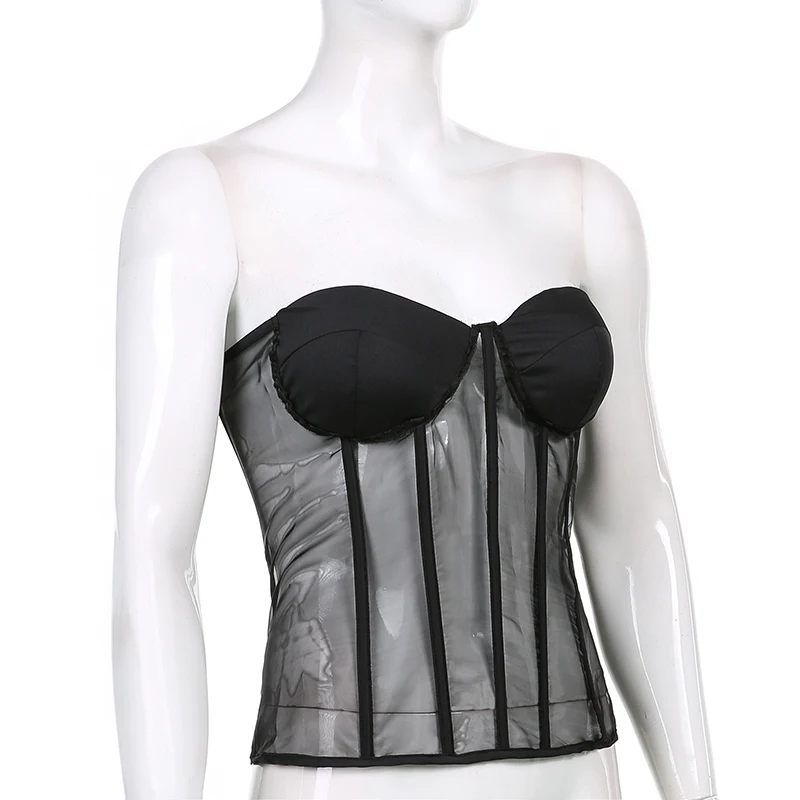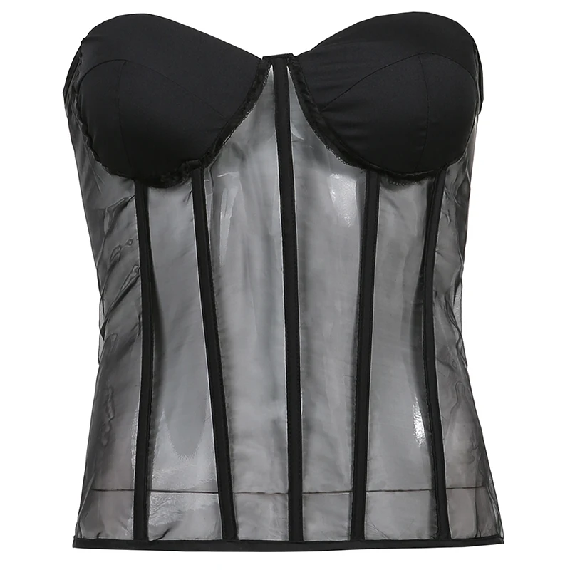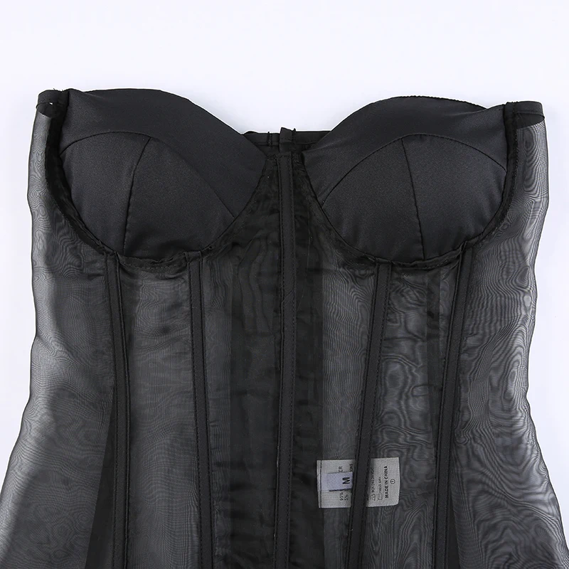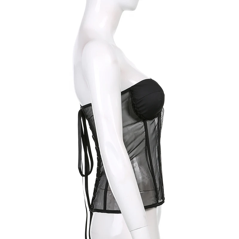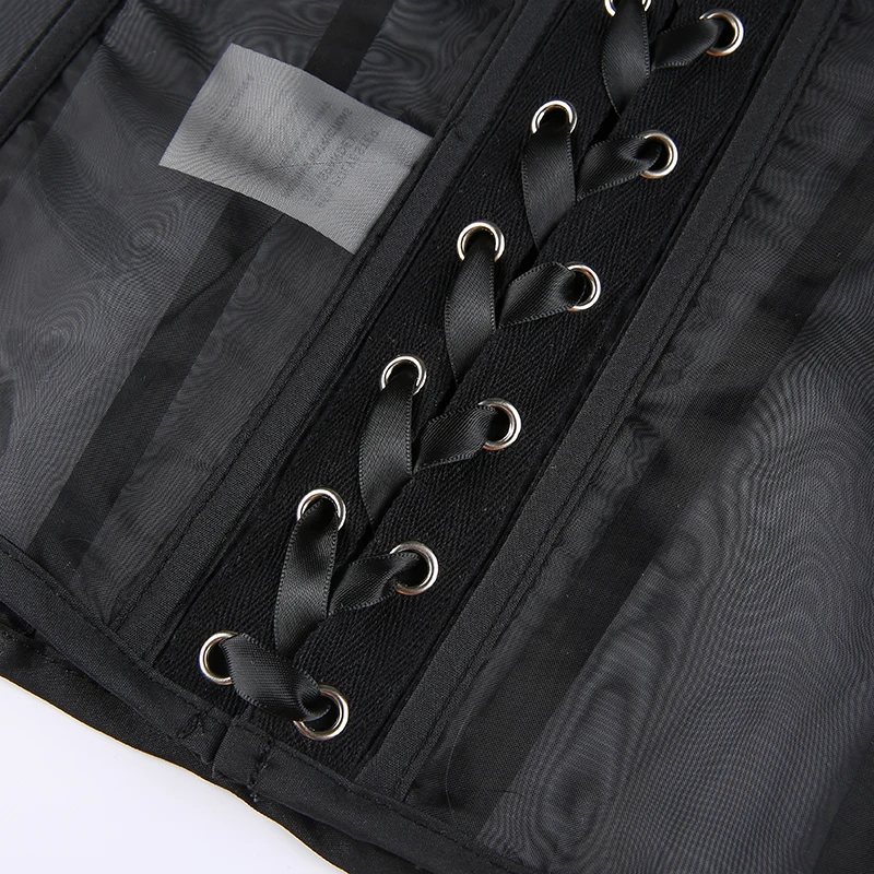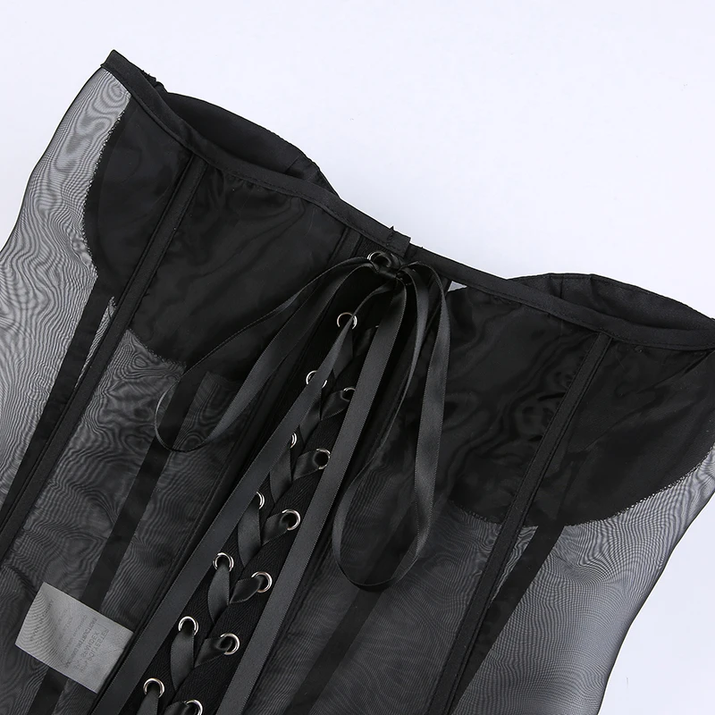 Женский сетчатый топ-корсет Rockmore, прозрачный укороченный топ на шнуровке сзади, для клубной вечеринки, белый топ с запахом, уличная одежда, черный, готический