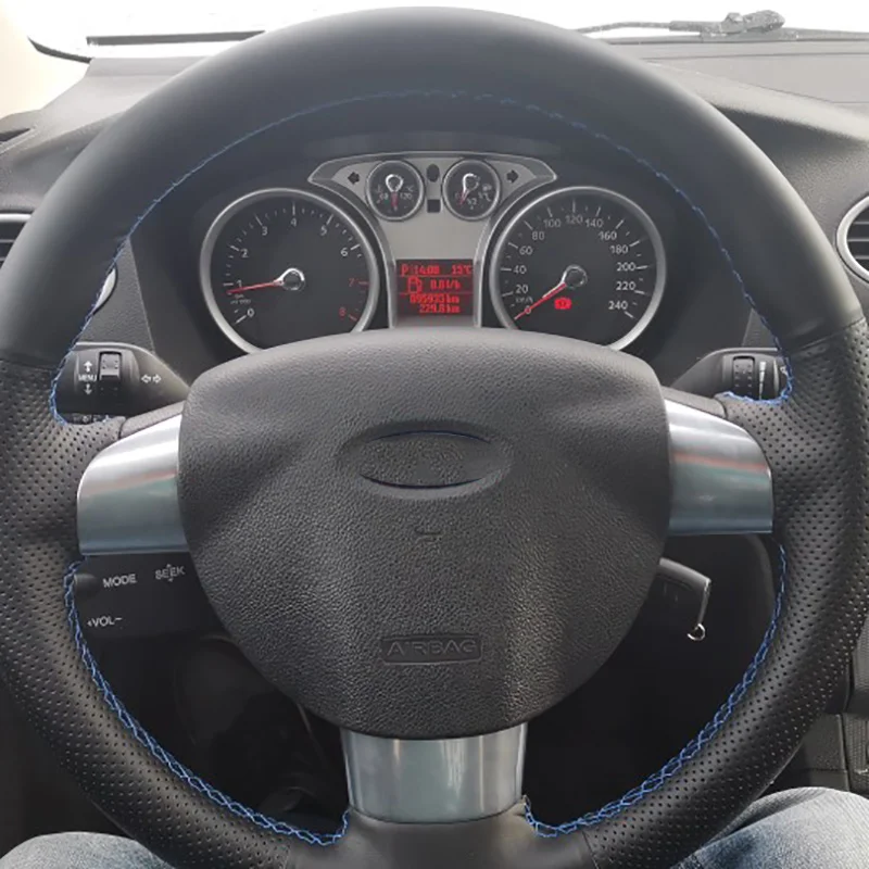 Оригинальный чехол рулевого колеса автомобиля для Ford Focus 2 2005-2011, Кожаная оплетка, автомобильные аксессуары на руль, сделай сам