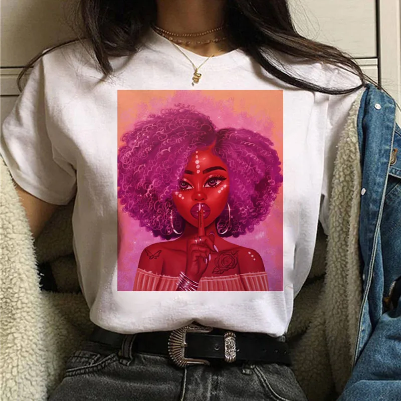Новинка 2021, женская футболка, модная рубашка с коротким рукавом, черная, с африканскими вьющимися волосами, с принтом меланина, уличная одежда, топы, женская одежда