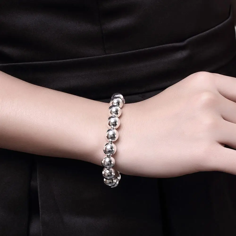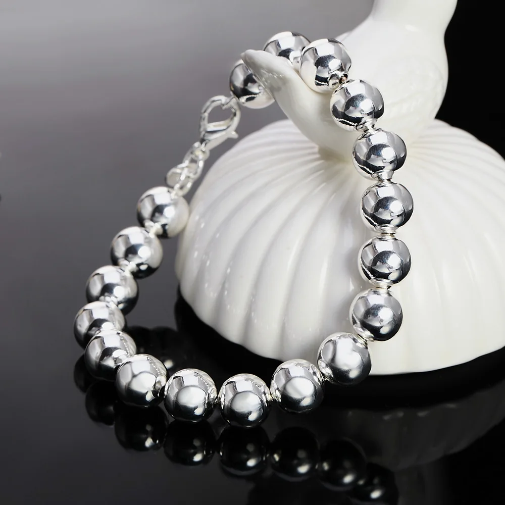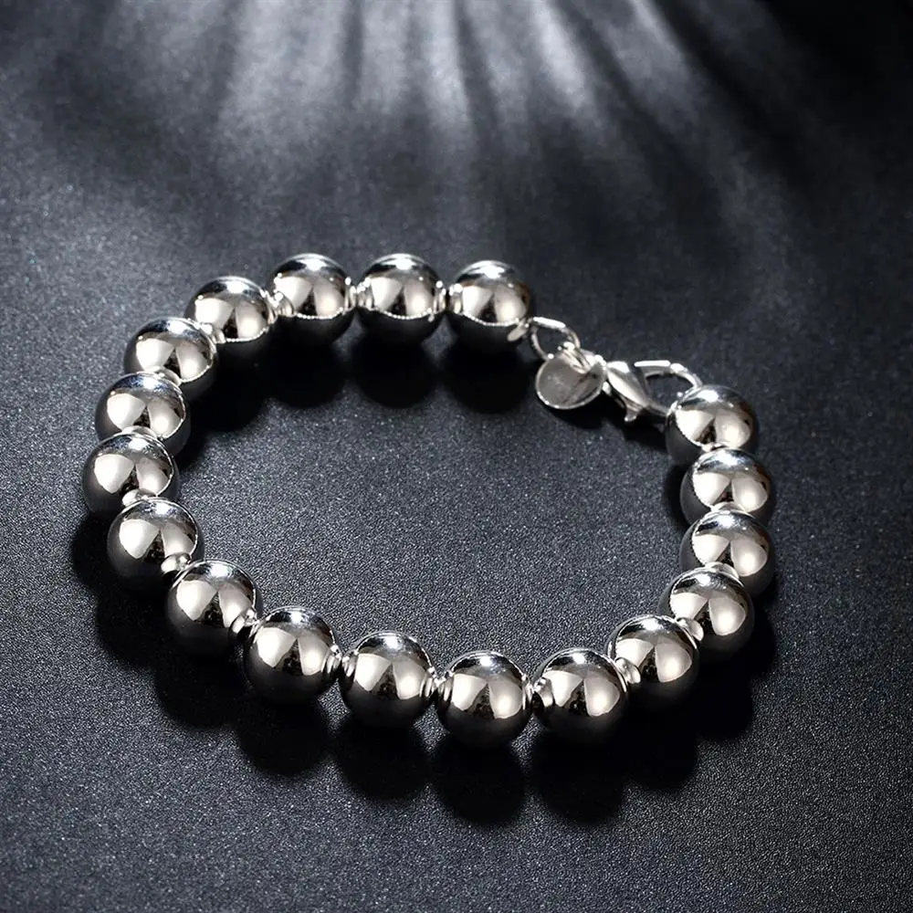 Браслет с бусинами для мужчин и женщин, Серебряный классический браслет со штампом 925 пробы, 10 мм, на свадьвечерние ринку, Рождество, бижутерия