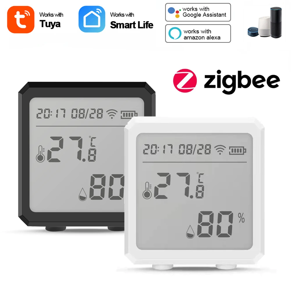 Датчик температуры и влажности Tuya Smart Zigbee, комнатный гигрометр, термометр с ЖК-дисплеем, поддержка Alexa Google АССИС