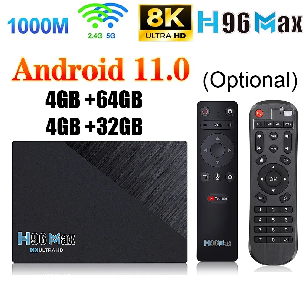 H96 Max 8 Гб ОЗУ 64 Гб ПЗУ H96 MAX Android 11 ТВ-приставка RK3566 Четырехъядерный 4 ГБ 32 ГБ LAN 1000 м 2,4G/5G двойной Wifi BT4.0 8K HD телеприставка 2021