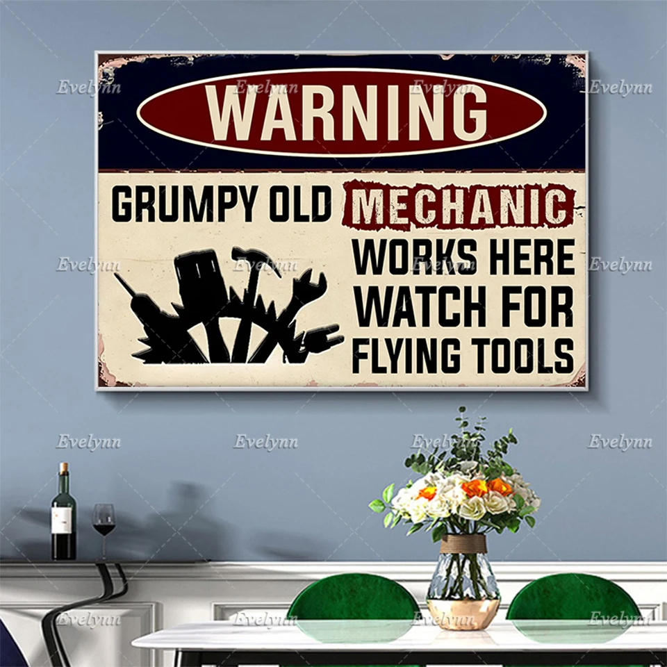 Механический постер Предупреждение ительный плакат, старые механические работы здесь, часы для летающих инструментов, печать, домашний декор, холст, поплавок