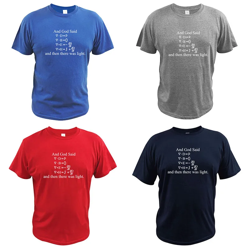 Футболка с надписью смешной и Господь сказал: Максвелл-уравнения, и тогда был светильник лый математический дизайн Geek Creat футболка в стиле фанки